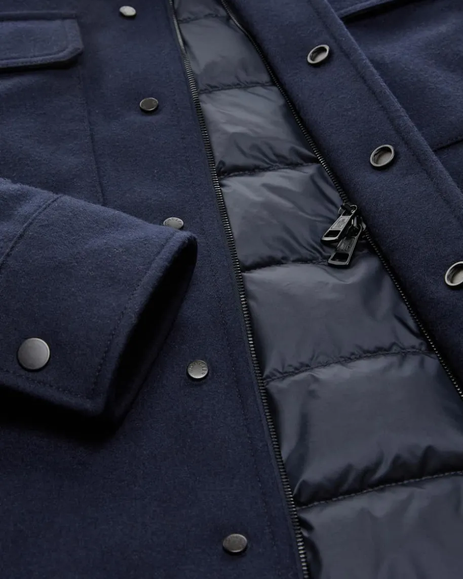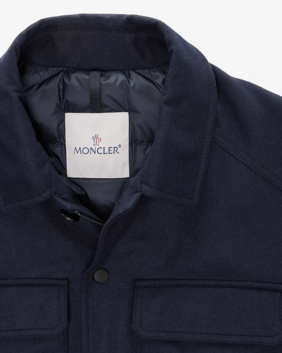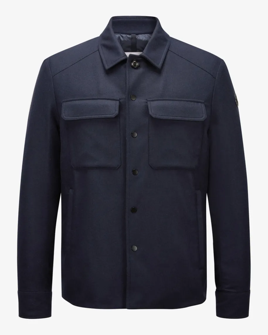 Daunen-Shirtjacket für Herren von Moncler in Navy. Das Modell präsentiert sichin modischer Hemd-Aufmachung, die für einen maskulinen Look sorgt. Zudemgarantiert die hochwertige Daunenfüllung eine optimale Wärmeisolierung.