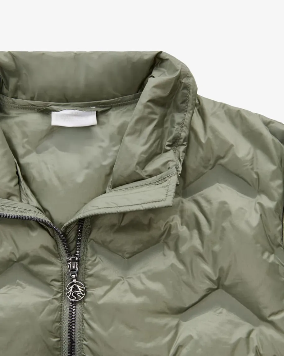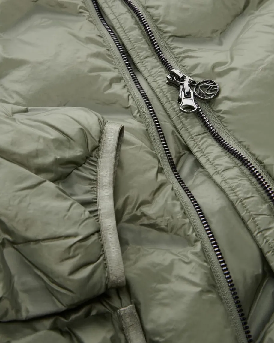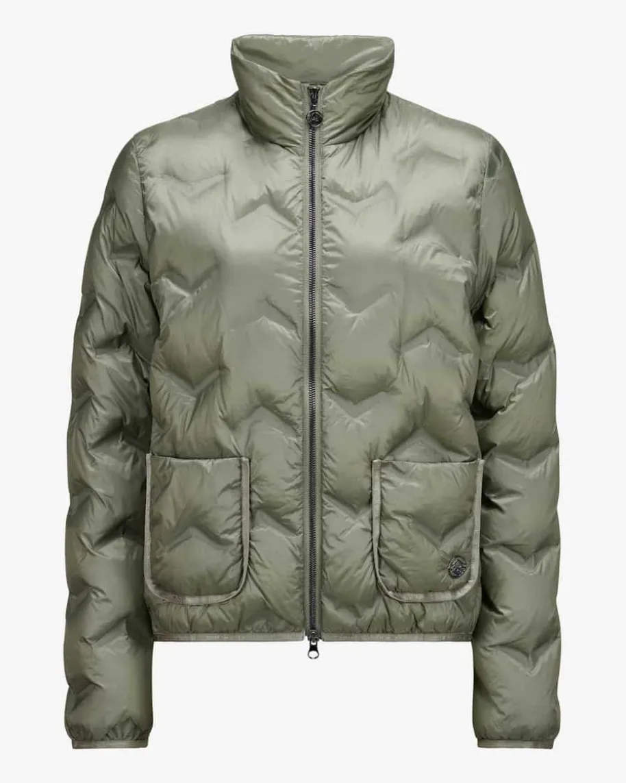 Daunenjacke für Damen von Sportalm Emotion in Oliv. Das Modell überzeugt mitraffinierter Prägung in Zackenform und dezent changierender Material-Qualität,während die hochwertige Daunenfüllung für eine angenehme Wärmeisolierung sorgt.Die Logo-Details runden den Look stilvoll ab.