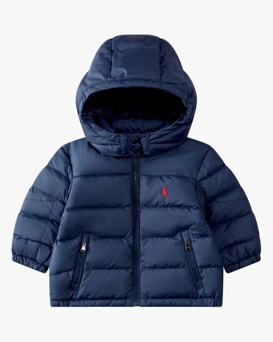 Daunenjacke für Jungen von Polo Ralph Lauren in Navy. Das Modell überzeugt durchdie klassische Steppung in sportiver Aufmachung, während die abnehmbare Kapuzeeinen vielseitigen Style schafft. Zudem punktet die Jacke mit einer leichtenFüllung, die eine angenehm wärmende Funktion verspricht.