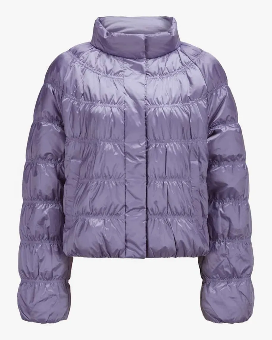 Daunenjacke für Damen von Marc Cain in Flieder. Das Modell besticht dankklassischer Details sowie der weiten Passform in moderner Aufmachung, währenddie changierende Stepp-Optik das Gesamtbild zum optischen Highlight avanciert.