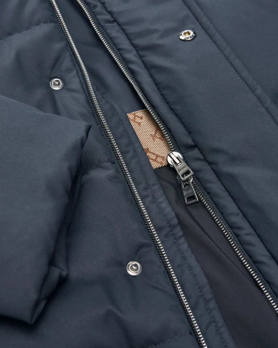 Daunenjacke für Herren von Herno in Navy. Dieses Modell in klassischerStepp-Aufmachung überzeugt mit seinem leichten Gewicht, während diewasserabweisende Ausrüstung und wärmende Daunenfüllung für angenehmeTragemomente sorgen. Die matte-Aufmachung schafft in Kombination mit denklassischen Details für einen modernen und zugleich zeitlosen Begleiter.