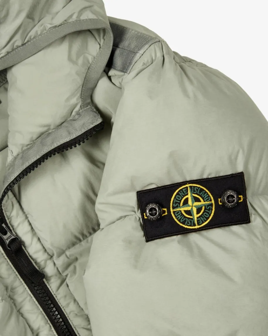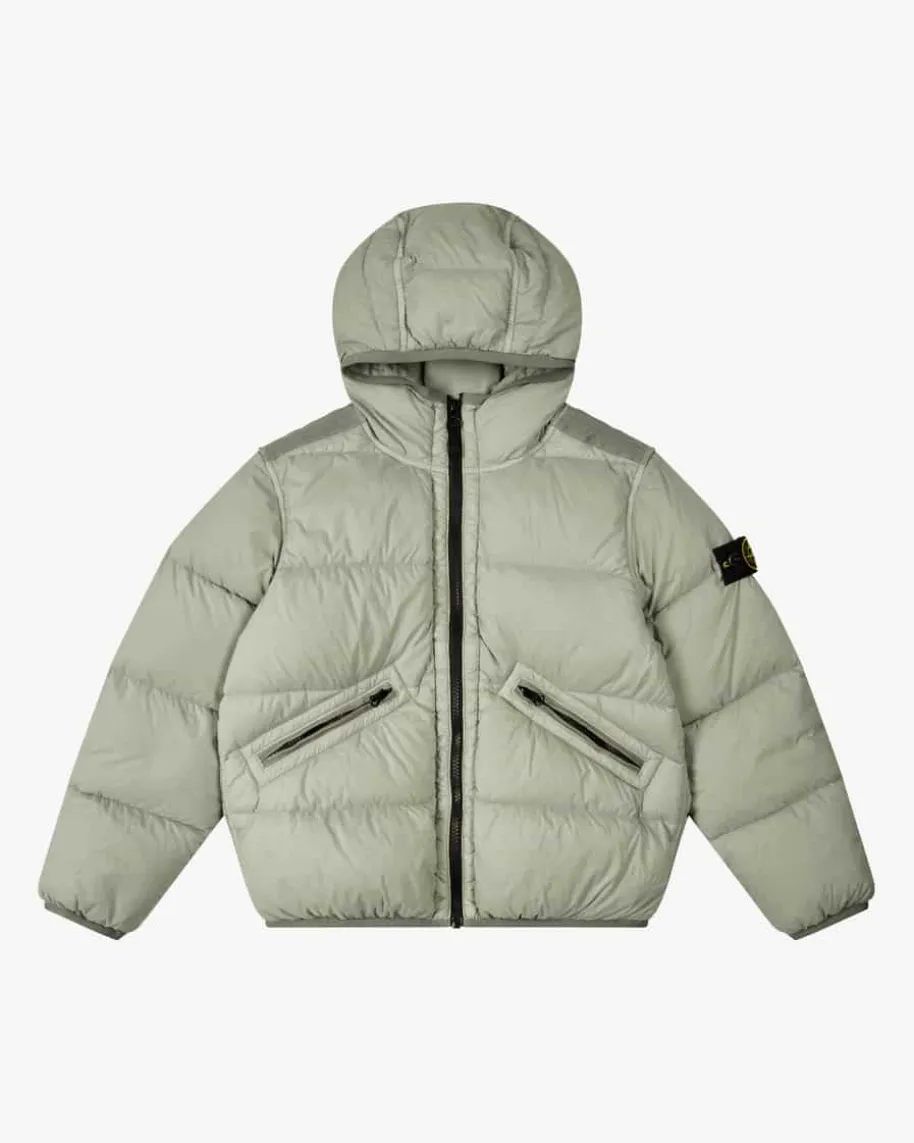 Daunenjacke für Jungen von Stone Island Junior in Graugrün. Das Modell überzeugtdurch das klassische Stepp-Design in matter Optik in sportiv-modernem Look,während die hochwertige Daunen-Feder-Füllung optimalen Kälteschutz bietet. Dieabnehmbare Logo-Plakette rundet die Jacke charakteristisch ab.