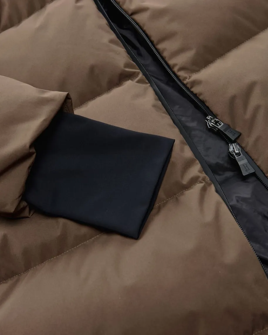Daunenmantel für Damen von Herno in Oliv und Schwarz. Das italienische Label hatsich mitseinen besonders weichen und leichten Daunen-Modellen einen Namen in derModebranche gemacht und ist für Liebhaber nicht mehr wegzudenken. Auch dieseslange Modell präsentiert sich in voluminöser Stepp-Optik und hält an kaltenTagen nicht nur warm, sondern punktet auch durch die wasserabweisende Pro MeteoFabric Tool Ausrüstung.