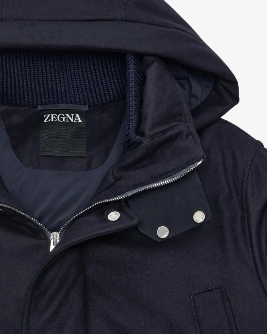 Daunenparka für Herren von Zegna in Navy. Das Modell aus hochwertiger Wollebesticht dank der wärmenden Daunen-Feder-Füllung mit angenehmen Tragemomenten,während funktionale Details einen vielseitigen Favoriten mit maskulinem Charmekreieren.