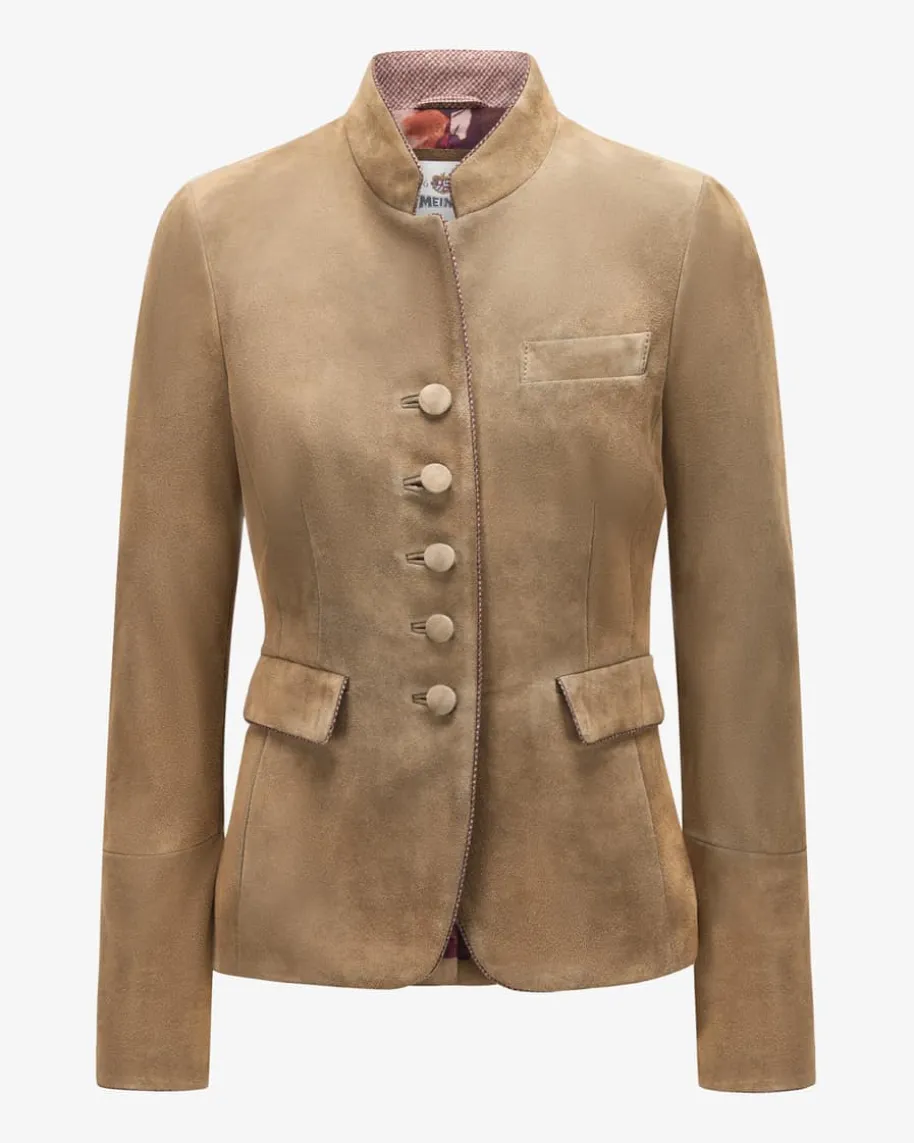 Davonshire Trachten-Lederjacke für Damen von Meindl in Inka. DasTraditionsunternehmen Meindl steht seit Jahrzehnten für traditionelle Handarbeitund höchste Qualität. Dank hochwertiger Ziegenleder-Qualität überzeugt diesesModell sowohl haptisch als auch optisch, während die dezenten Schurwoll-Paspelierungen das Gesamtbild edel vollenden. Der taillierte Schnitt setzt zudemfeminine Akzente.