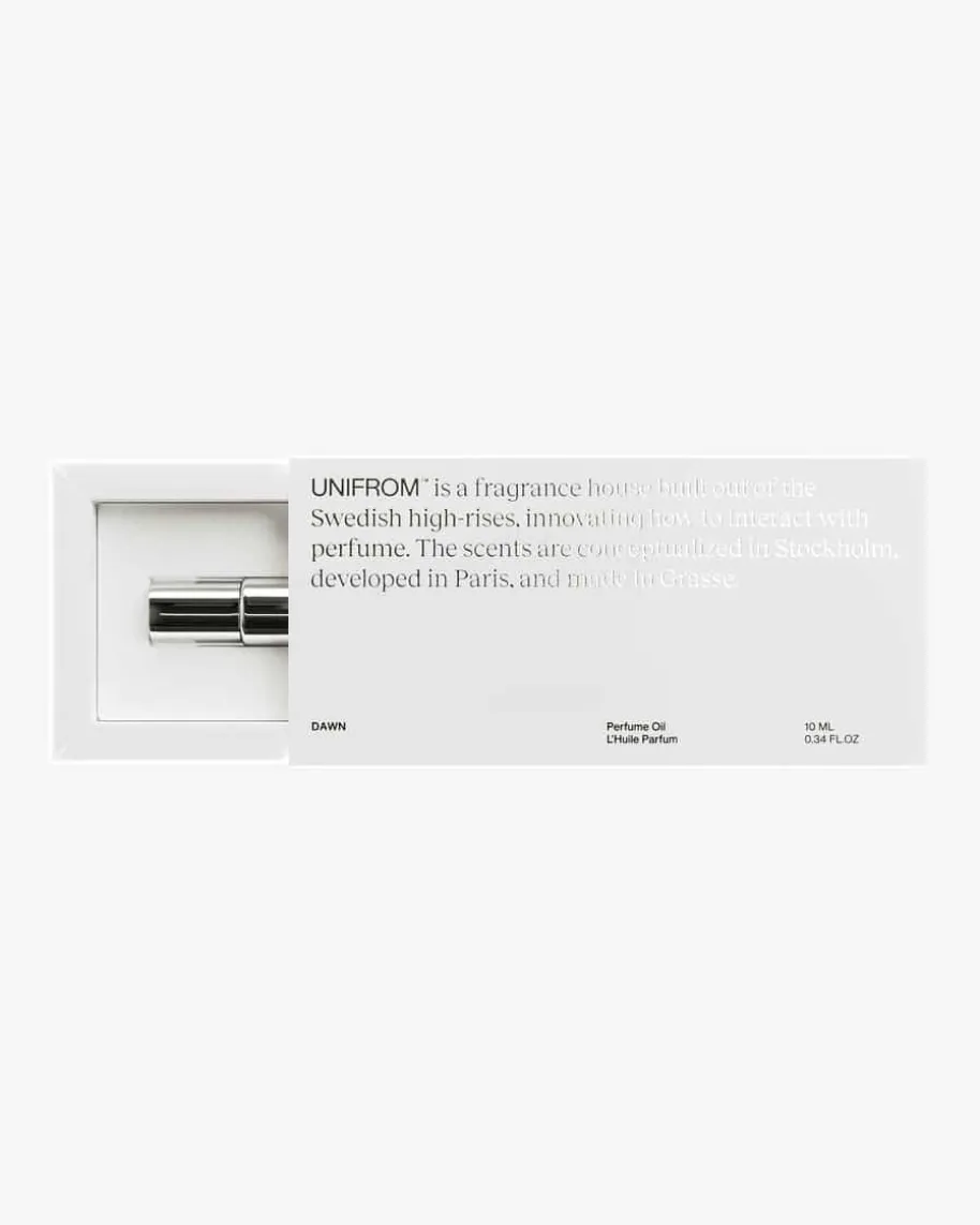 Dawn Roll-On Parfum 10ml von Unifrom in Silber. Gut riechen, immer und überall- Inspiriert von dem zeremoniellen Ritual, Tee aus atemberaubender Höhe mitperfekter Präzision zu gießen: Für diesen Duft werden Mate, Sichuan-Pfeffer undZimt zu einer makellosen Mischung verrührt. Dank der kompakten Roll-On-Aufmachung erweist sich das Öl als ein praktischer Begleiter für unterwegs.