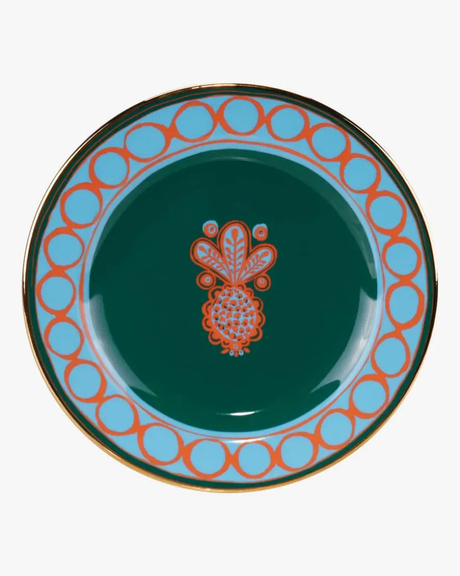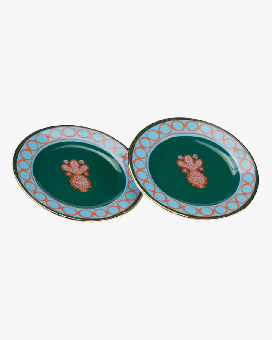 Dessert-Teller 2er-Set von La DoubleJ in Orange, Blau und Grün. Das Set punktetdank dem extravaganten Ananas-Dessin sowie dem stilvollen Goldrand in edlerAufmachung und eignet sich ideal zum Servieren einer Tasse Kaffee oder einemkleinen Stück Kuchen.