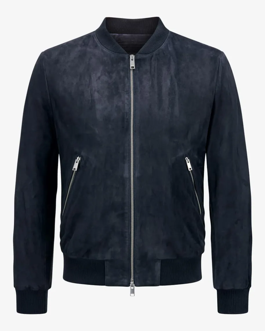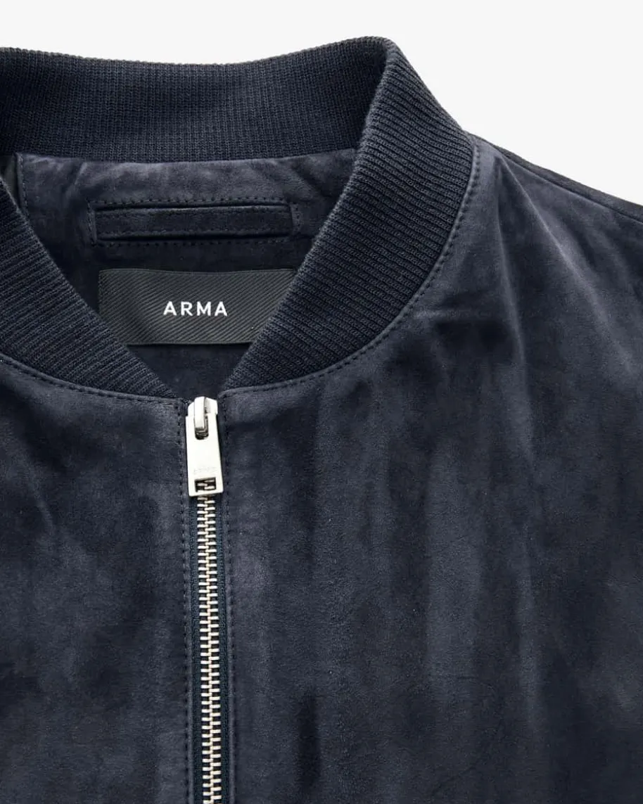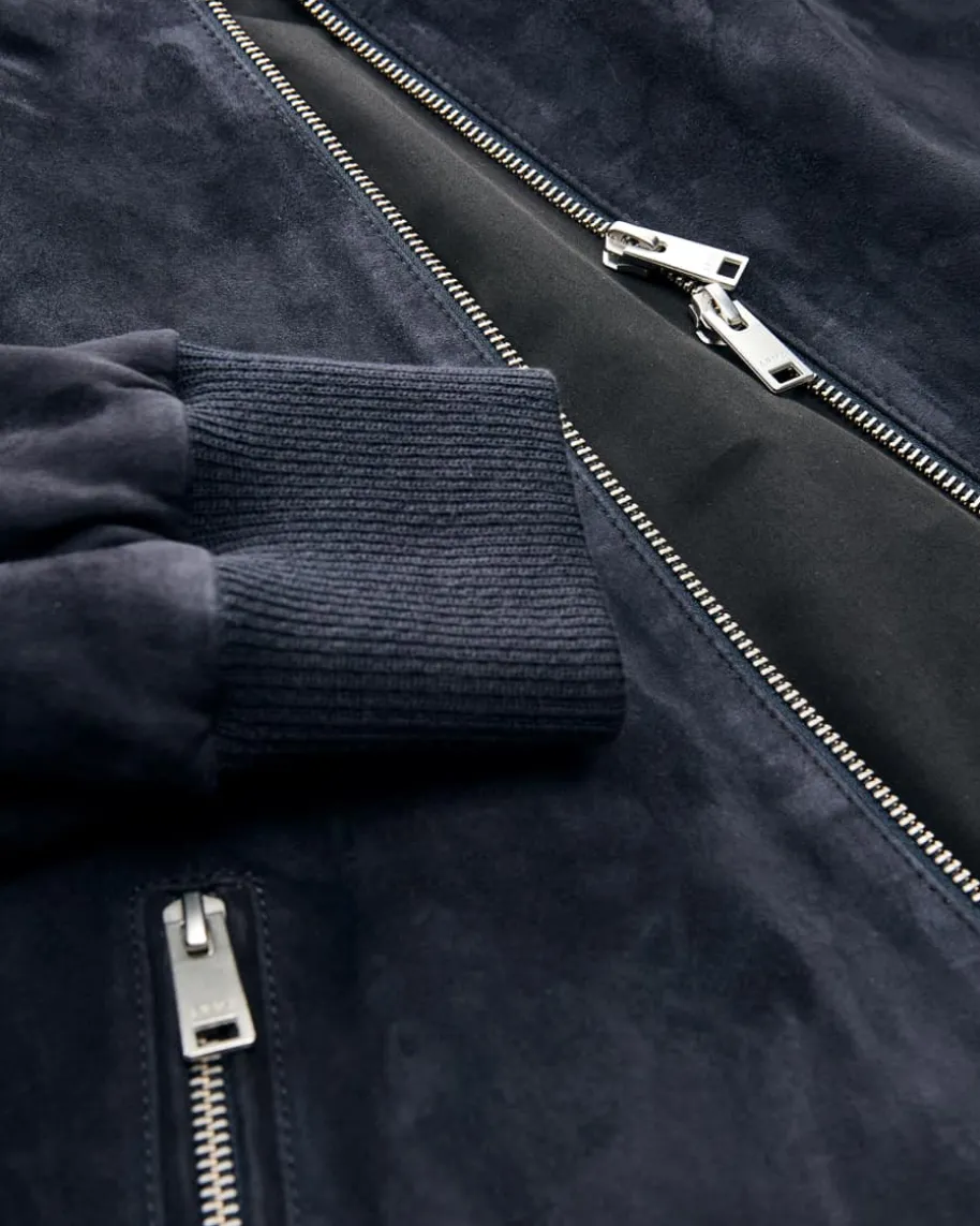 Didier Lederblouson für Herren von Arma in Nachtblau. Dank der hochwertigenVeloursleder-Qualität erhält das Modell einen edlen Charakter, während dieBlouson-Aufmachung sowie die Rippstrick-Details ein legeres Gesamtbild kreieren.