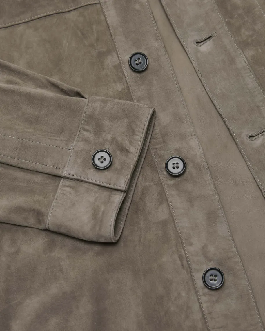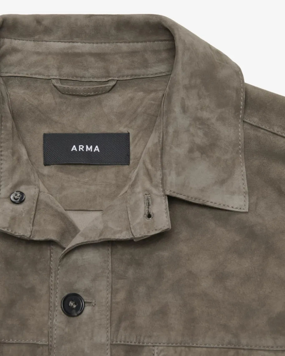 Dillen Lederjacke für Herren von Arma in Taupe. 1985 in Amsterdam gegründet,steht Arma für edle Leder- und Lammfellmode mit klarer Designsprache. Dank demweichen Lammveloursleder erhält das Modell einen hochwertigen Charakter, währendklassische Details einen maskulinen Look zaubern.