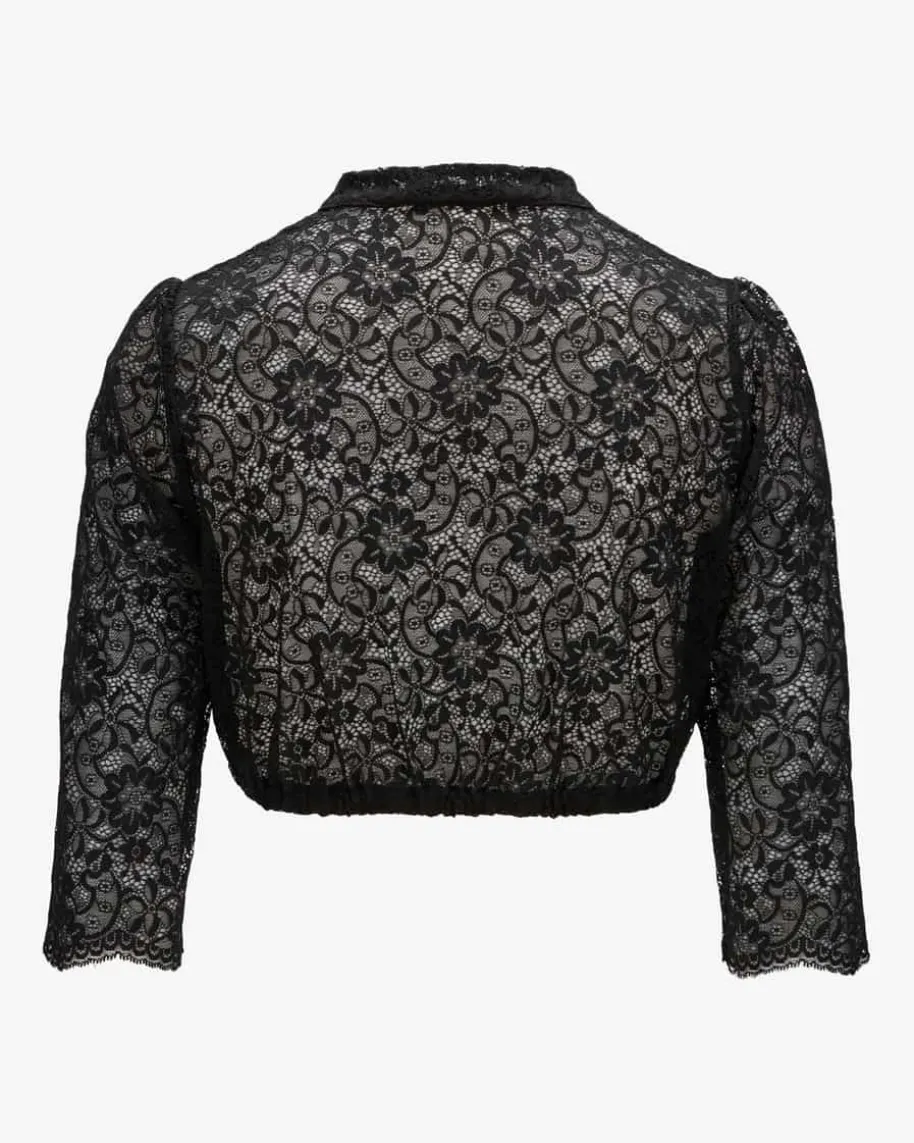 Dirndlbluse für Damen von Silk & Pearls x LODENFREY in Schwarz. Das Modellüberzeugt dank der feinen, floralen Spitze in traditionell-femininer Aufmachung,während die dezenten Puffärmel den Trachten-Look mit romantischer Notevollenden.