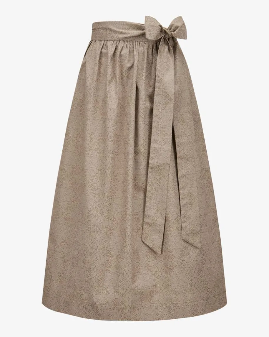 Dirndlschürze lang für Damen von LODENFREY in Taupe. DasModell präsentiert sich mitleichter Baumwoll-Qualität und feinem Ornament-Muster – Einfemininer Begleiterfür vielseitige Trachten-Looks.