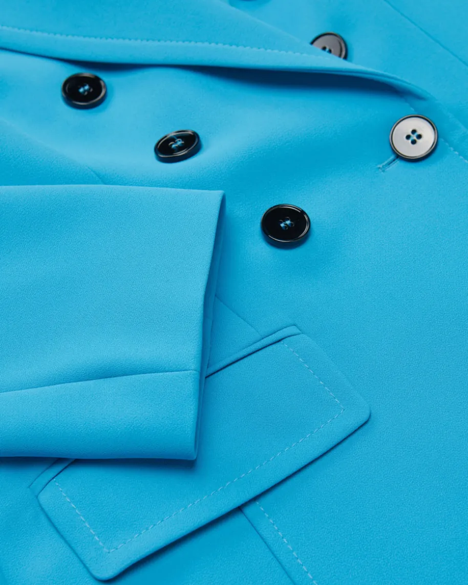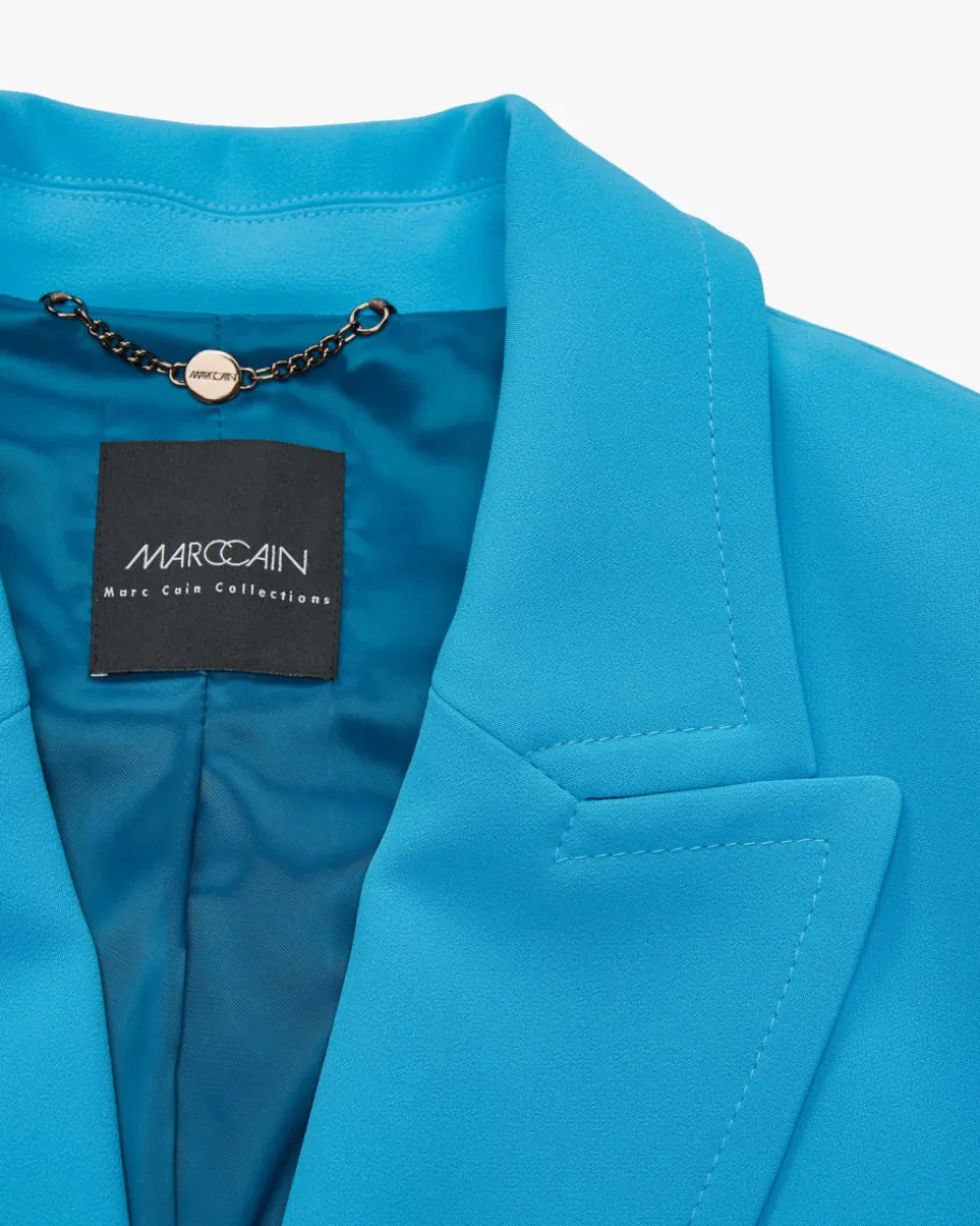 Doppelreiher-Blazer für Damen von Marc Cain in Türkis. Die Deutsche Marke stehtfür selbstbewusste, feminine Looks. Kombistarke Designs mit hohemQualitätsanspruch – bekannt für Prints & Strick. Auch dieses Modell überzeugtmit elastischem Crepe-Material und klassischen Details, während die taillierteSilhouette in modischer Signal-Farbe ein stilvolles Statement-Piece kreiert.