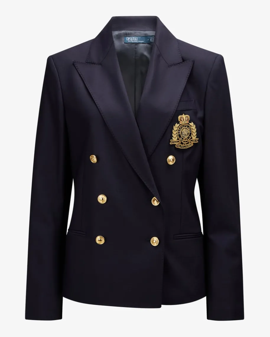 Doppelreiher-Blazer für Damen von Polo Ralph Lauren inNachtblau. Mit diesem zweireihigenModell präsentiert das Label einen eleganten Begleiter, derdurch klassischeDetails gekonnt vollendet wird. Wappenknöpfe und die Logo-Applikation sorgenzudem für das gewisse Etwas.