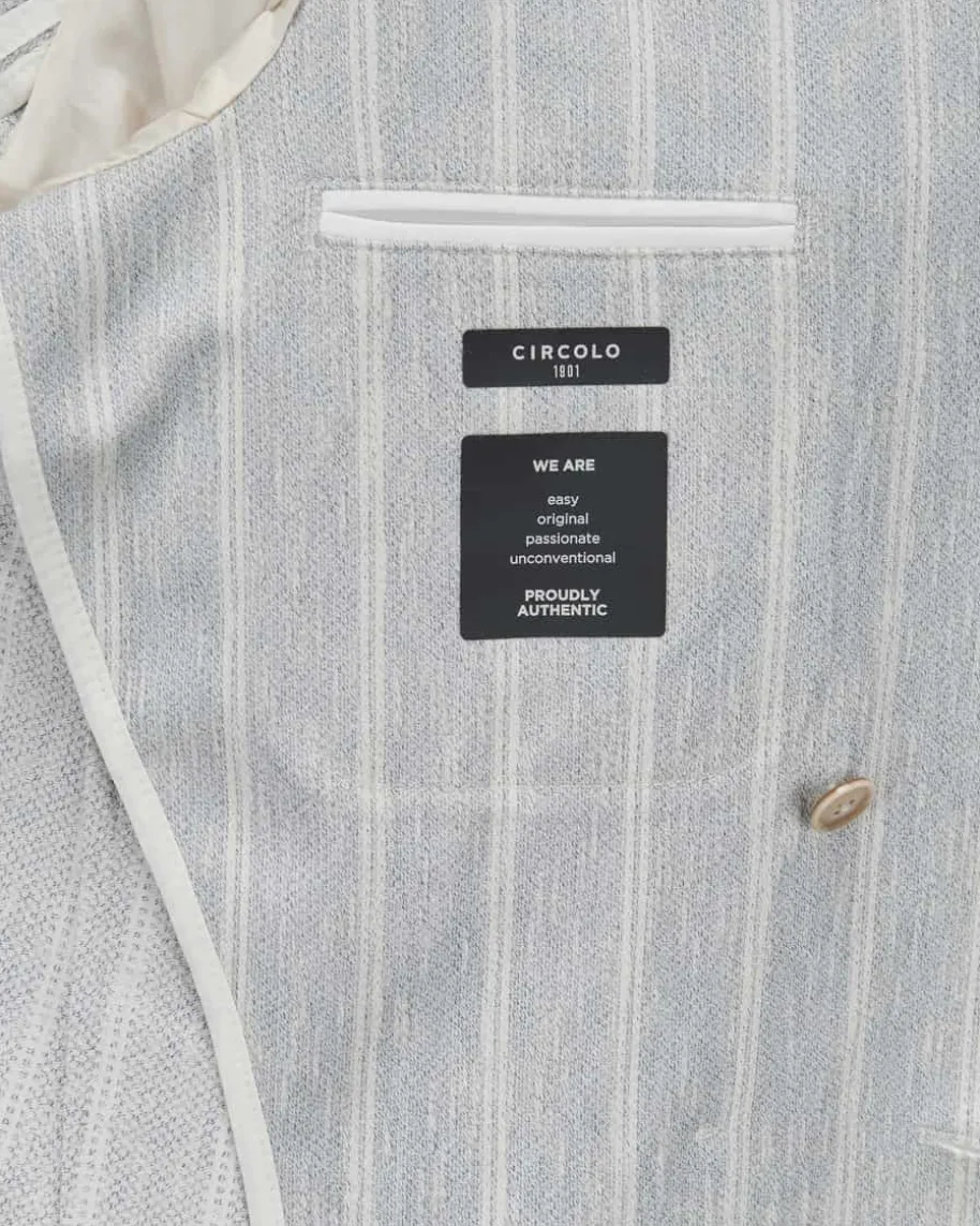 Doppelreiher für Herren von Circolo 1901 in Hellblau und Weiß. Dank des feinenStreifen-Dessins besticht das Modell in modischem Flair, während die hochwertigeBaumwoll-Qualität eine angenehme Haptik verspricht. Klassische Details rundendas maskuline Gesamtbild gekonnt ab.