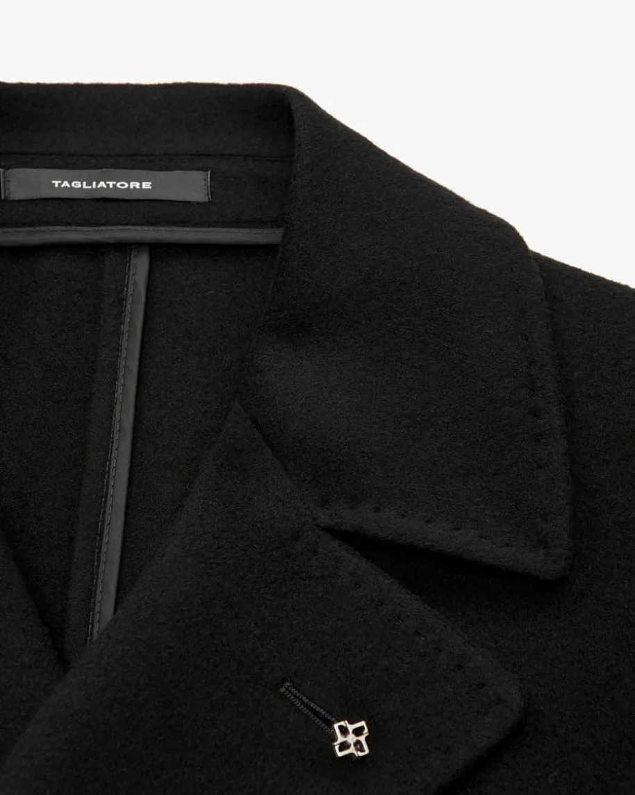 Doppelreiher-Wollmantel für Herren von Tagliatore in Schwarz. Mit diesem Modellaus hochwertigem Schurwoll-Mix präsentiert das Label einen angenehmen Begleiterfür die Übergangszeit, während klassische Details ein maskulines Gesamtbild mitStil in Sinn kreieren.