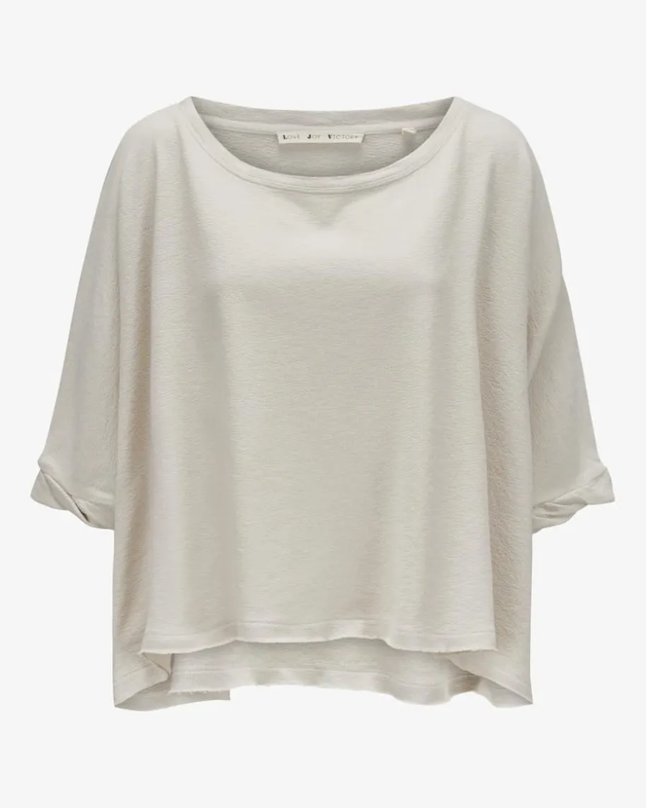 Driva Sweatshirt für Damen von Love Joy Victory in Stein. Dank asymmetrischemSchnittund Oversize-Passform besticht das Modell als legerer Favorit mit Sinn für Stil,während die hochwertige Bio-Baumwolle einen besonders weichen Griff verspricht.