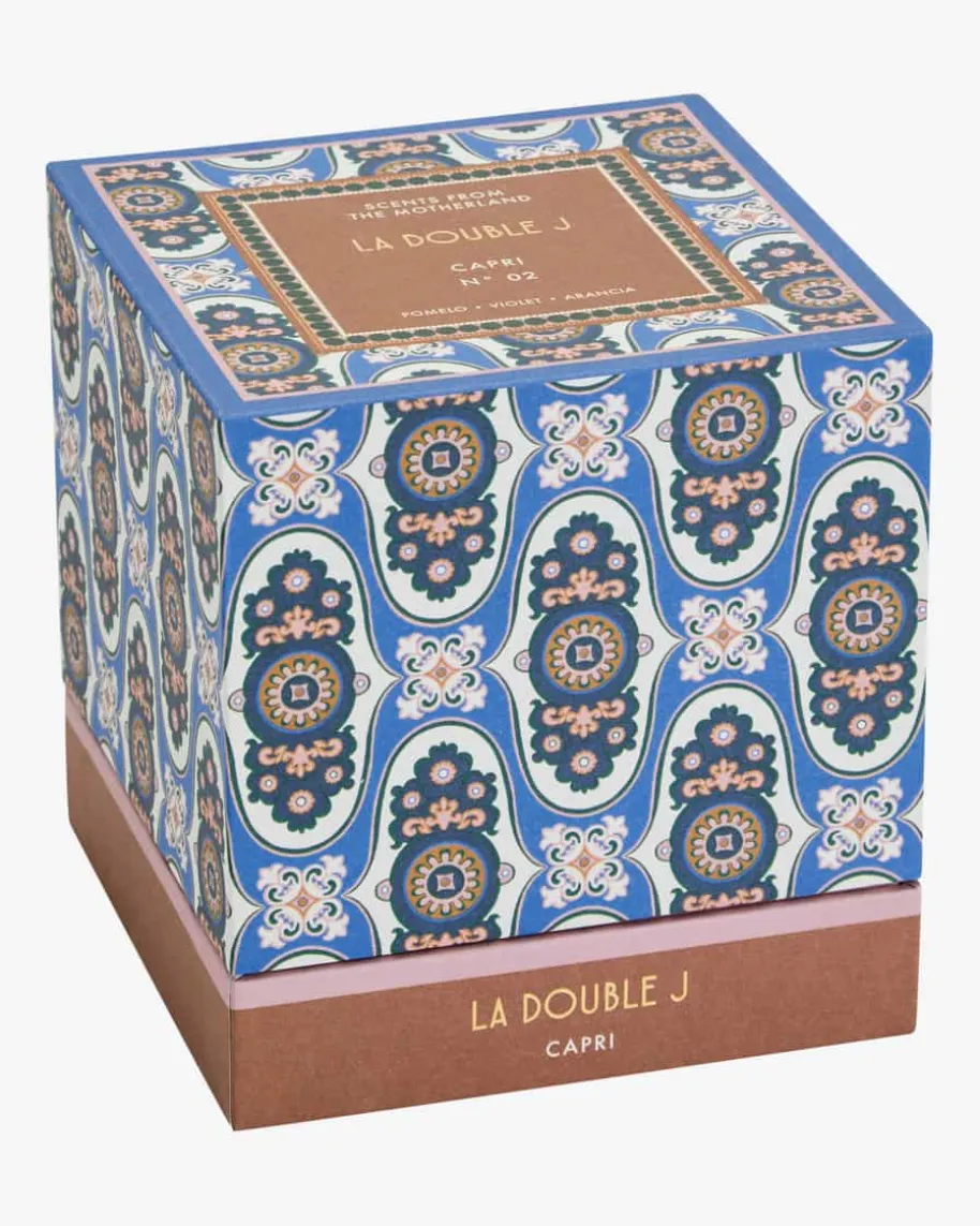 Duftkerze von La DoubleJ. Lassen Sie sich auf ein fruchtiges Duft-Erlebnis ein,das Sie gedanklich nach Capri katapultiert – DasZusammenspiel aus schwarzer Johannisbeere, Pampelmuse, Zitrone, Apfelholz,Zedernholz, Veilchen und Orange bringt den Sommer in die eigenen vier Wände.Zudem avanciert das hochwertigePorzellan-Glas mit 18-karätigem Goldrand nach abbrennen der Kerze als stilvollesDeko-Objekt in Ihrem Zuhause, das Sie als kleine Vase oder für Beauty-Produkteverwenden können.
