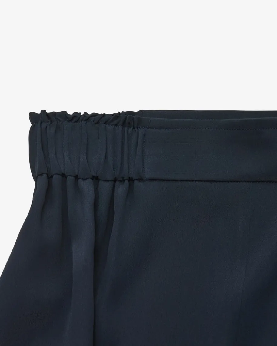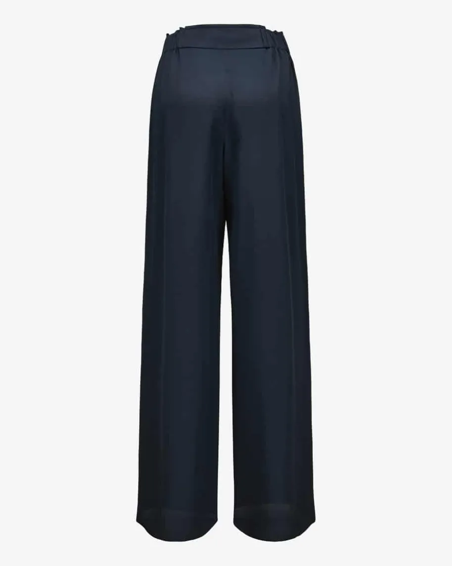 Dusty Hose für Damen von Natan in Marine. Mit diesem Modell hat das belgischeLabel ein besonderes Piece aus angenehm-leichter Crêpe-Qualität geschaffen, dasdank der weiten Schnittführung mit hohem, elastischen Bund zu einem femininenHighlight avanciert, welches zugleich mit hohem Tragekomfort punktet. Kombiniertmit passender Bluse und hohen Schuhen garantiert das Outfit stilsichereAuftritte.