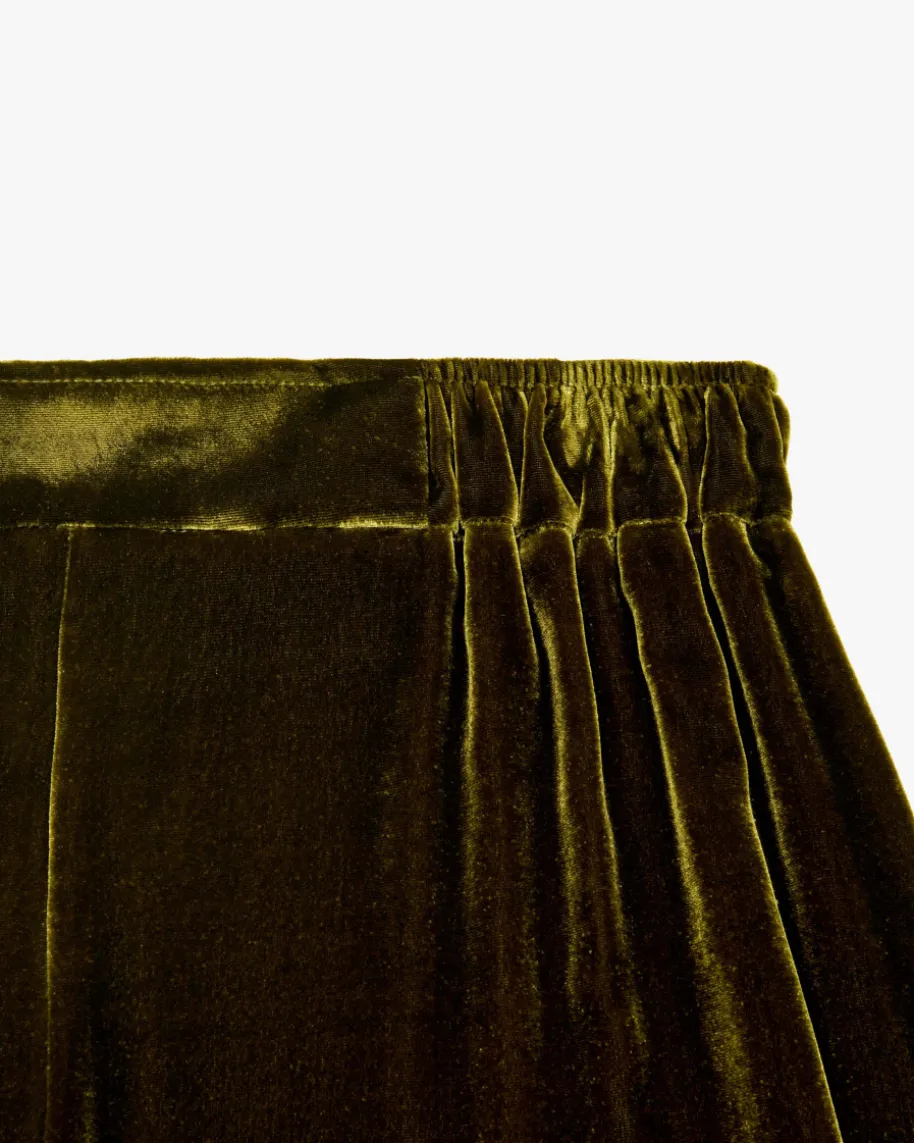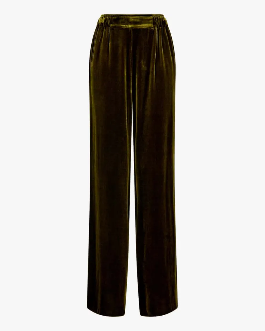 Dusty Samthose für Damen von Natan in Oliv. Mit diesem Modell hat das belgischeLabel ein besonderes Piece aus angenehmer Samt-Qualität geschaffen, das dank derweiten Schnittführung mit elastischen Bund zu einem femininen Highlightavanciert, welches zugleich mit hohem Tragekomfort punktet.
