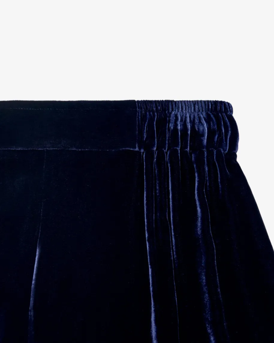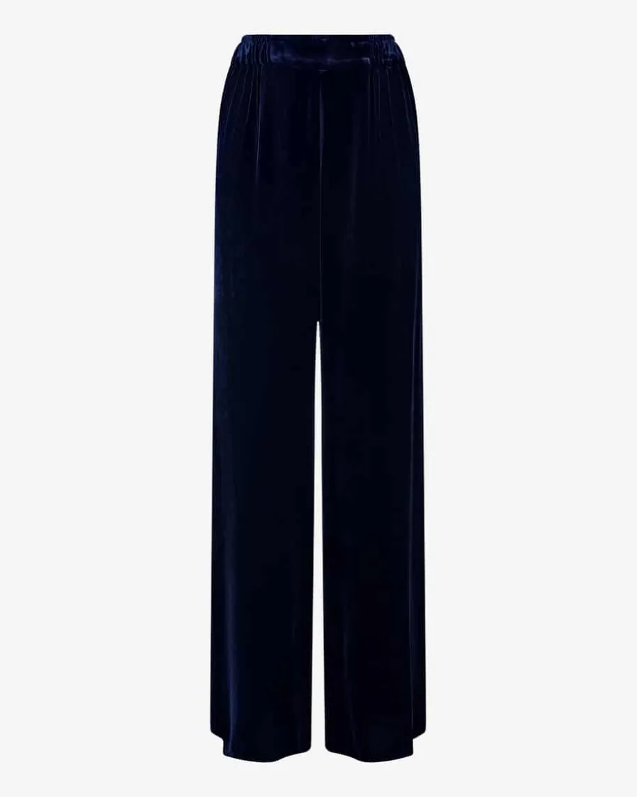 Dusty Samthose für Damen von Natan in Nachtblau. Mit diesem Modell hat dasbelgische Label ein besonderes Piece aus angenehmer Samt-Qualität geschaffen,das dank der weiten Schnittführung mit elastischen Bund zu einem femininenHighlight avanciert, welches zugleich mit hohem Tragekomfort punktet.