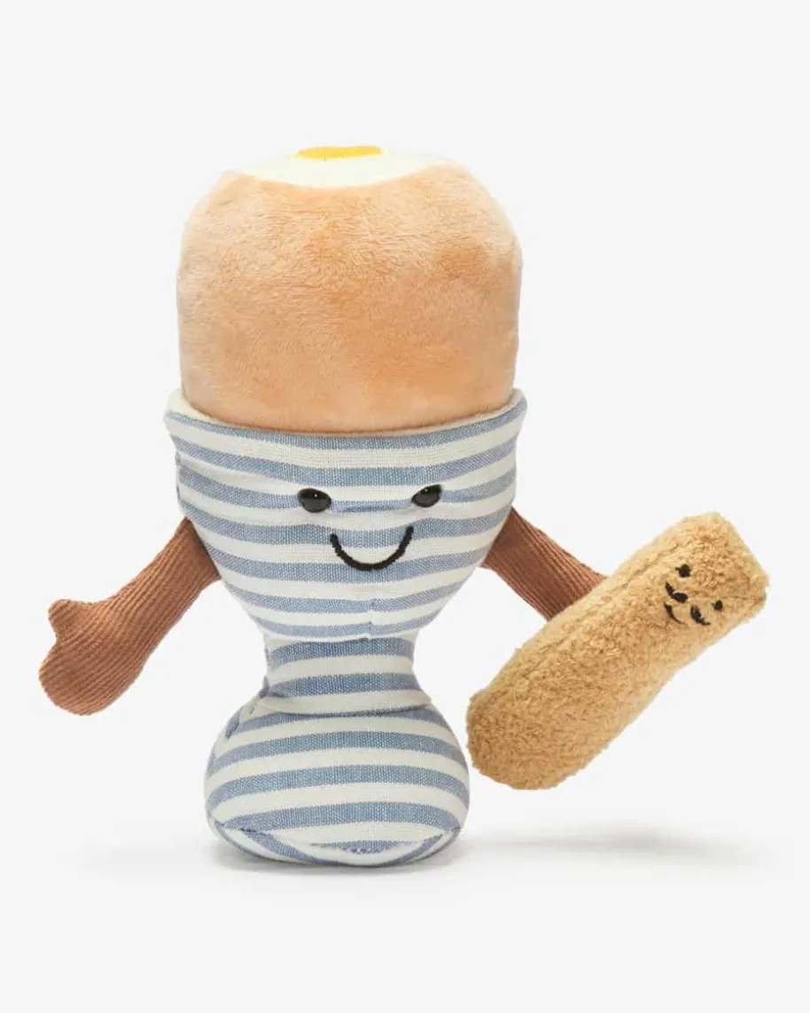 Eggetha Egg Plüschtier für Kinder von Jellycat in Blau, Weiß und Nude. Seit 1999entwirft das Londoner Label süße Kuscheltiere mit kreativen Designs. Auch diesesniedliche Ei im Eierbecher mit lächelndem Gesicht erweist sich als fröhlicherSpielebegleiter für Unterwegs oder zuhause.