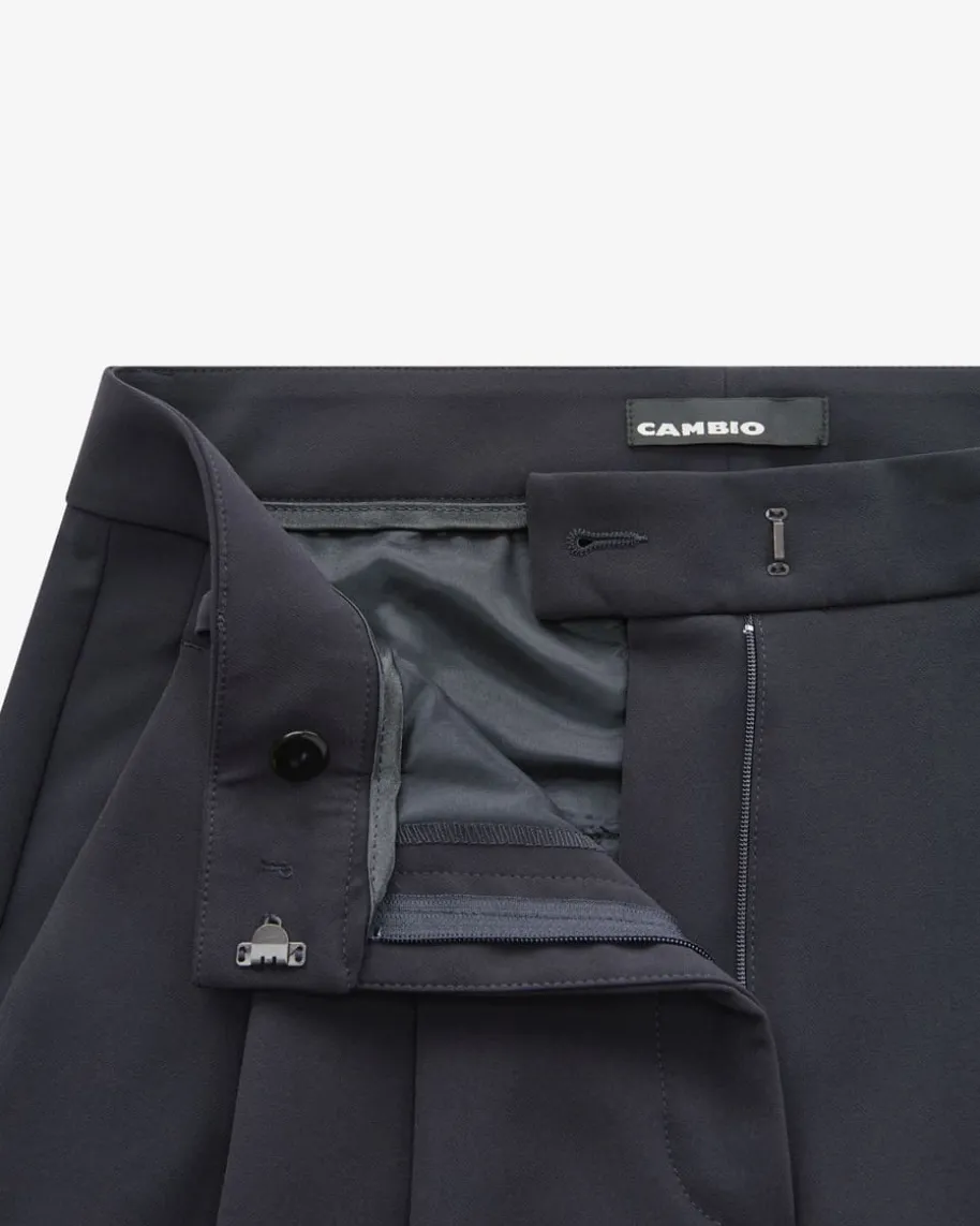 Emilie 7/8-Hose Fashion Fit für Damen von Cambio in Navy. Das Modell präsentiertsich mit leicht verkürzter Passform und klassischen Details, während diefließende Material-Verarbeitung für angenehmen Tragekomfort sorgt – Eineleganter Business-Begleiter für vielseitige Looks.