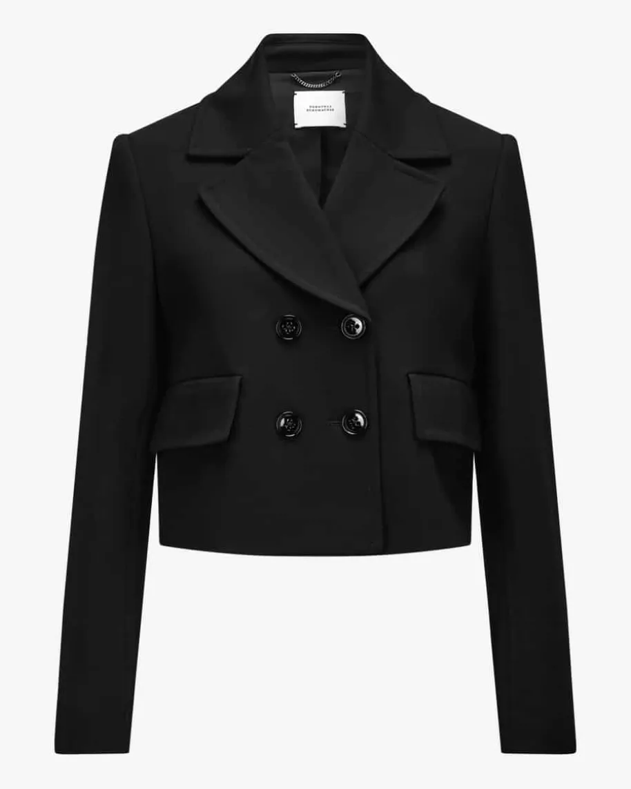 Emotional Essence Blazer für Damen von Dorothee Schumacher in Schwarz. FemininePower aus Deutschland – Dorothees Looks verbinden Stärke mit verspielterEleganz. Auch dieses Modell in verkürzter Passform überzeugt in cleanem Schnitt,während die zweireihige Aufmachung in Kombination mit der dezent elastischenQualität einen modernen Begleiter mit Power-Twist kreiert.