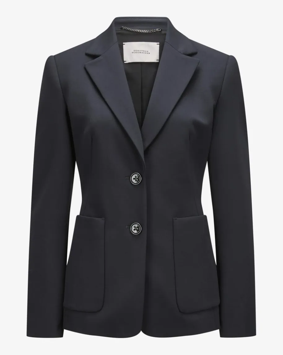 Emotional Essence Blazer für Damen von Dorothee Schumacherin Navy. Dasschlichte Model überzeugt durch die angenehme Haptik derelastischen Material-Qualität, während die markantenStecktaschen eine modische Note verleihen. Alszeitloser Begleiter und Basic- Blazer vielseitigkombinierbar.