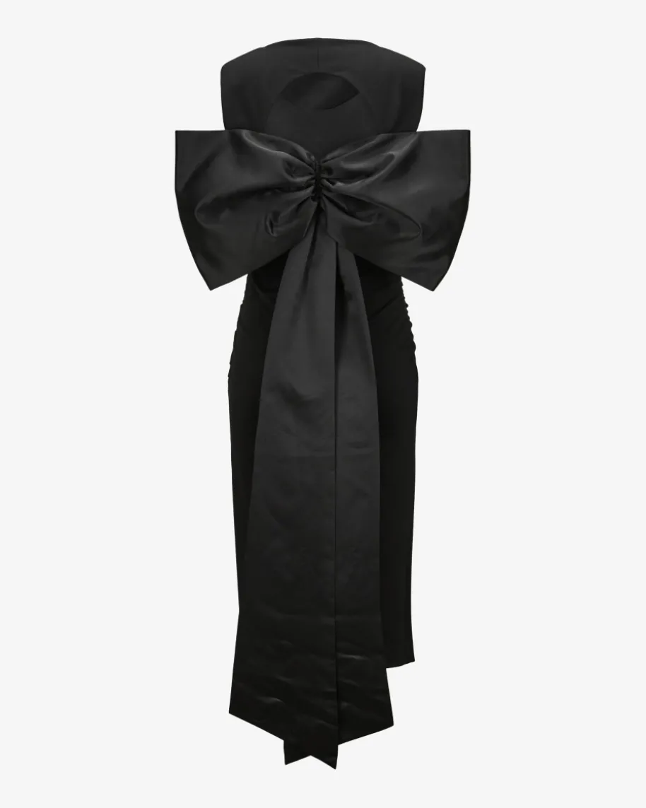Emotional Essence Kleid für Damen von Dorothee Schumacher in Schwarz. FemininePower aus Deutschland – Dorothees Looks verbinden Stärke mit verspielterEleganz. Auch dieses Modell präsentiert sich mit schmaler Passform und geraffterTaille, die eine feminine Silhouette zaubert. Die extravagante Schleifen-Applikation mit langen Bändern aus edel changierendem Satin rundet den elegantenAbend-Look gekonnt ab.