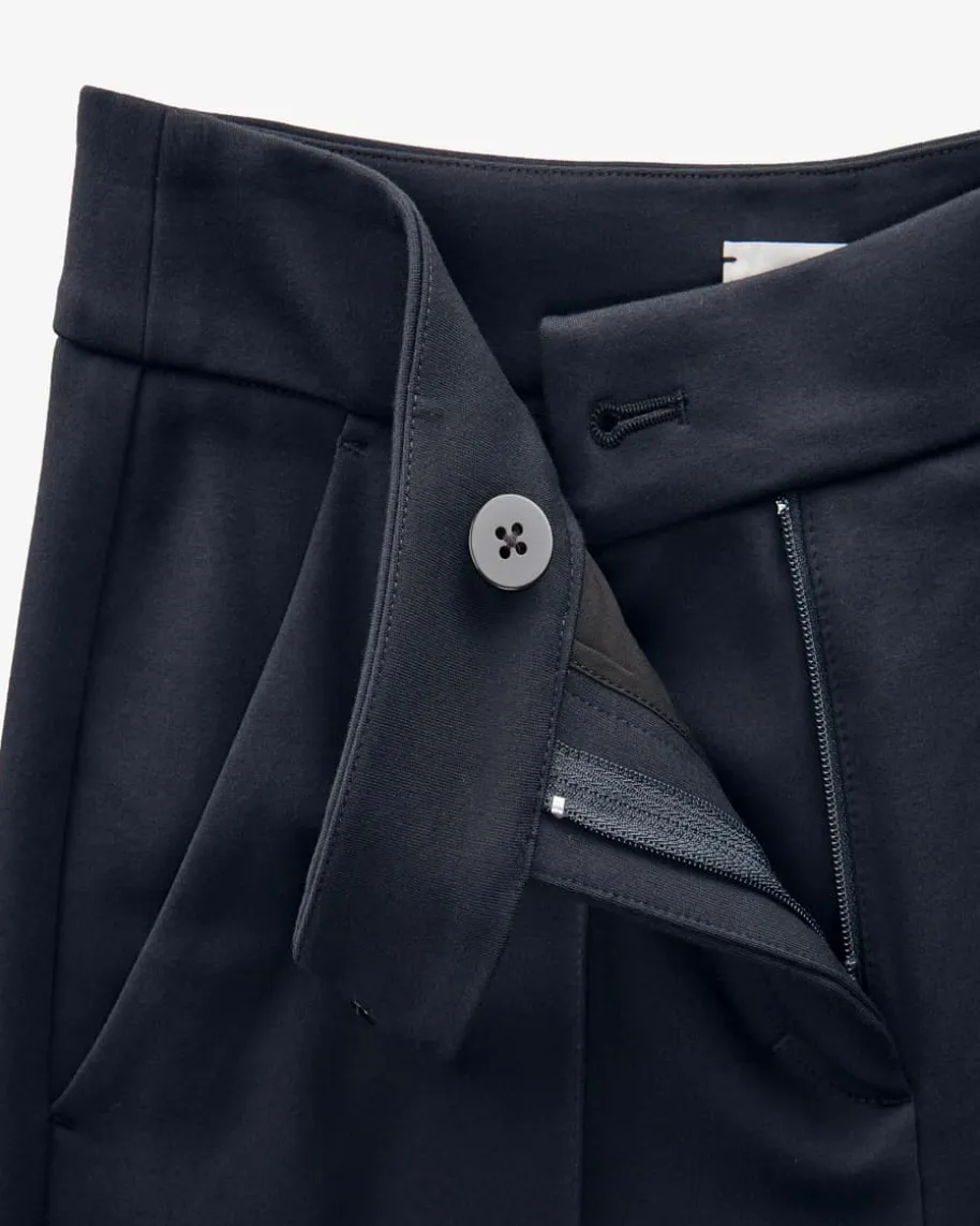 Emotional Essence l Hose für Damen von Dorothee Schumacher in Navy. DiesesModell punktet mit klassischem Design im Marlenehosen-Stil und avanciert so zumzeitlosen Must-Have in Ihrer Garderobe. Die schwere Material-Qualität sorgt mithoher Elastizität für perfekten Tragekomfort, während die abgenähten Bügelfaltendas Gesamtbild harmonisch vollenden.