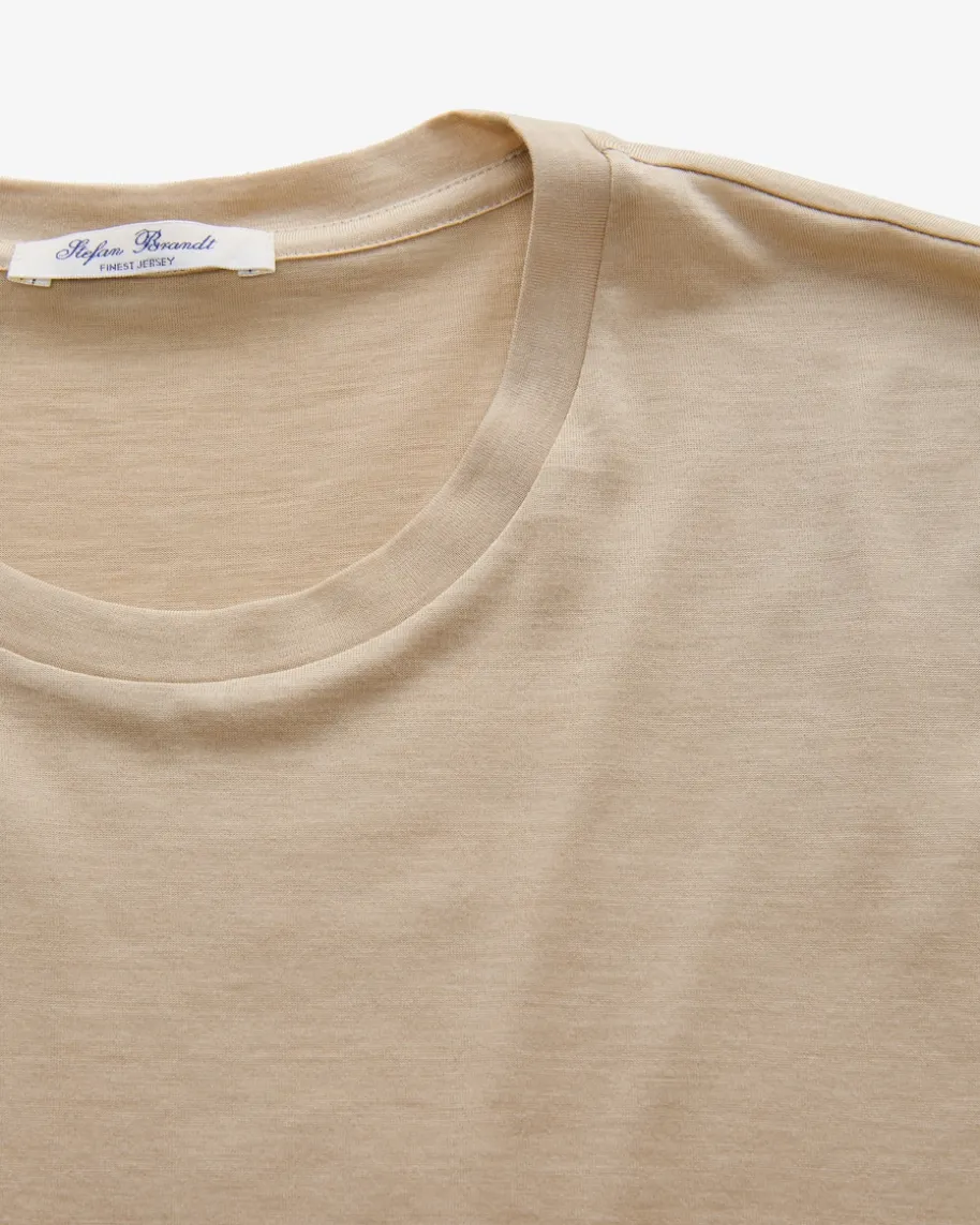 Enno Seiden-T-Shirt für Herren von Stefan Brandt in Nude. Aus luxuriösem Seiden-Baumwoll-Mix gefertigt, werden die Styles des deutschen Labels nach höchstenQualitäts-Standards und immer im Sinne der sozialen Verantwortung entworfen.Dieses Basic präsentiert sich in schlichter Aufmachung sowie elastischer, dünnerQualität, die für besonderen Tragekomfort sorgt.