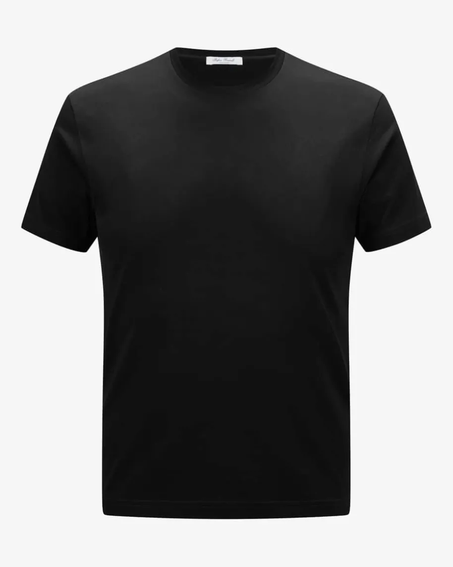 Enno T-Shirt für Herren von Stefan Brandt in Schwarz. Aus organischer Pima-Baumwolle gefertigt, werden die Styles des deutschen Labels nach höchstenQualitäts-Standards entworfen und immer im Sinne der sozialen Verantwortung -Dieses Basic präsentiert sich in gerader Passform und angenehm weicherQualität.