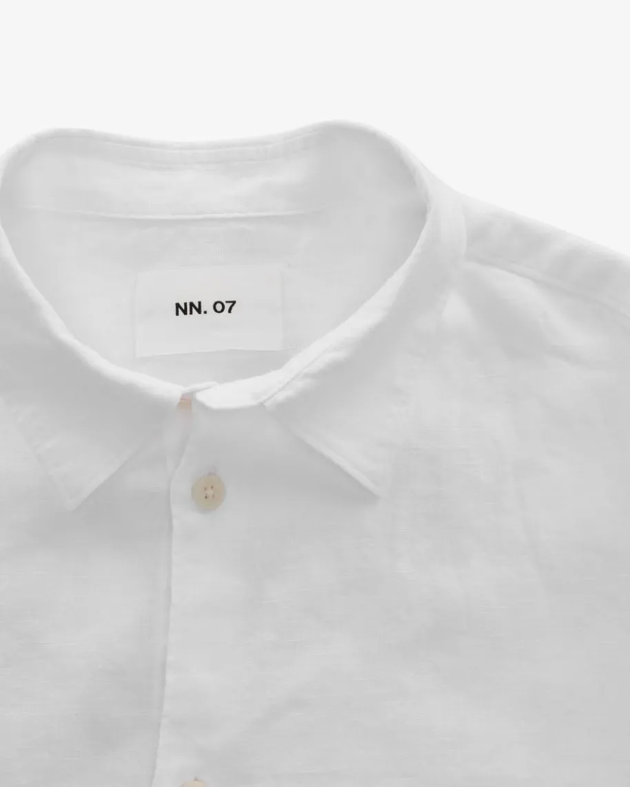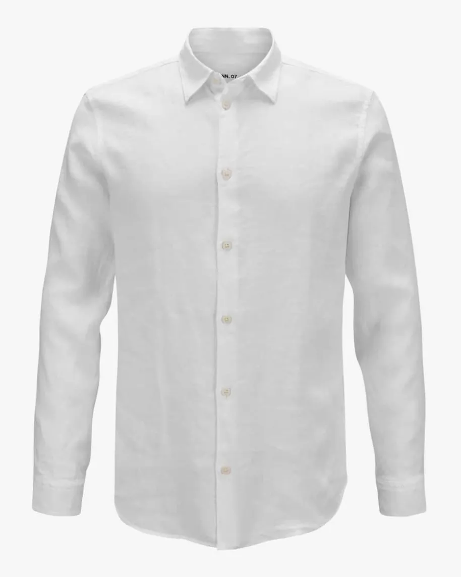 Enzo Leinenhemd für Herren von NN.07 in Weiß. Das Modell präsentiert sich inhochwertiger Leinen-Qualität und überzeugt mit angenehmen Tragemomenten, währenddie klassische Aufmachung einen maskulinen und zeitlosen Begleiter kreiert.