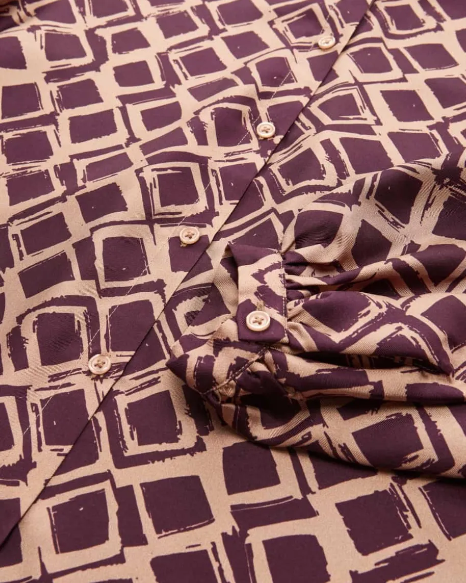 Eva Seidenbluse für Damen von Lu Li Lina in Cherry und Beige. Die fließendeSeiden-Qualität verleiht dem Modell einen edlen Look, während das Allover-Dessineinen modischen Eyecatcher kreiert. Klassische Hemdblusen-Details runden denfemininen Style harmonisch ab.