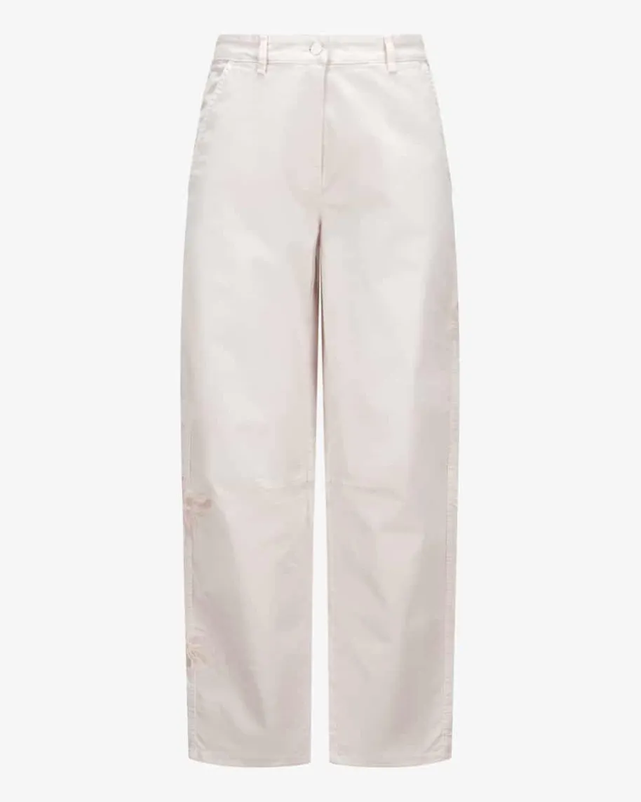 Eve Hose von Cambio in Sand. Mit weitem Schnitt präsentiert sich das legereModell in zeitloser Aufmachung und überzeugt dank floraler Stick-Motive alskombistarker Alltagsfavorit.