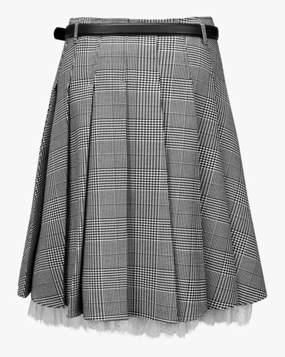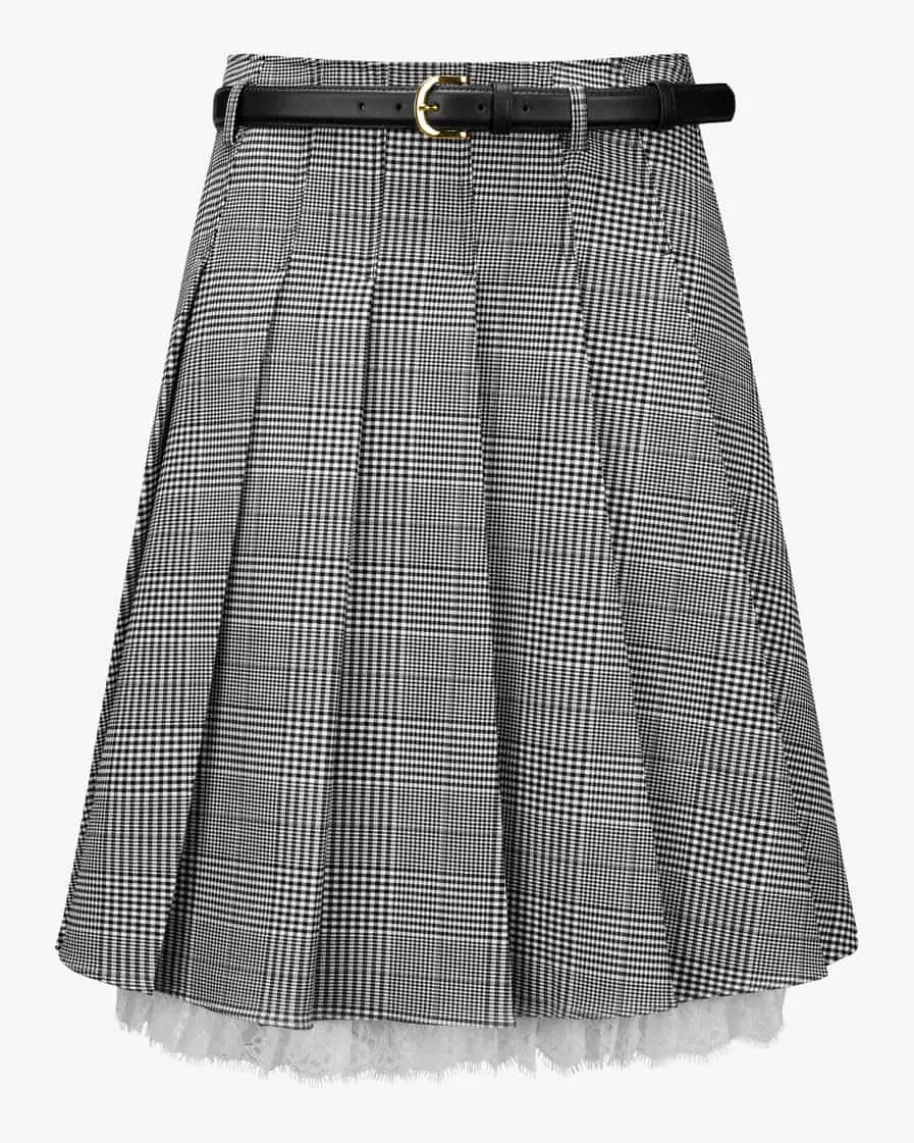 Faltenrock für Damen von Self-Portrait in Schwarz und Weiß. Das Modellbegeistert mit feinem Karomuster und markanten Falten-Details, die für dasgewisse Etwas sorgen. Der elegante Look in Kombination mit dem romantischenUnterrock mit Spitzenborte zaubert einen vielseitigen Style.