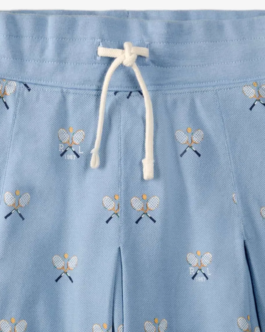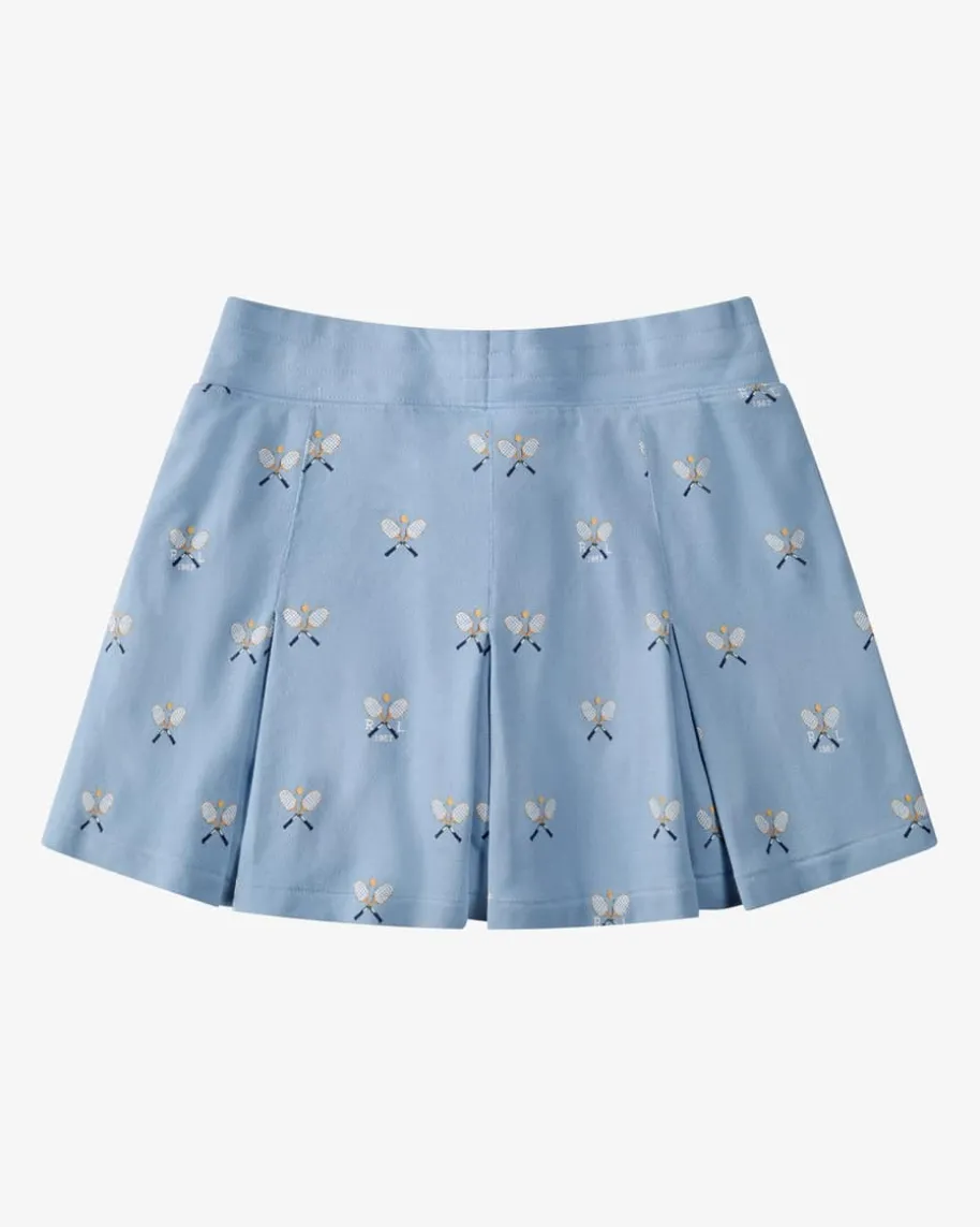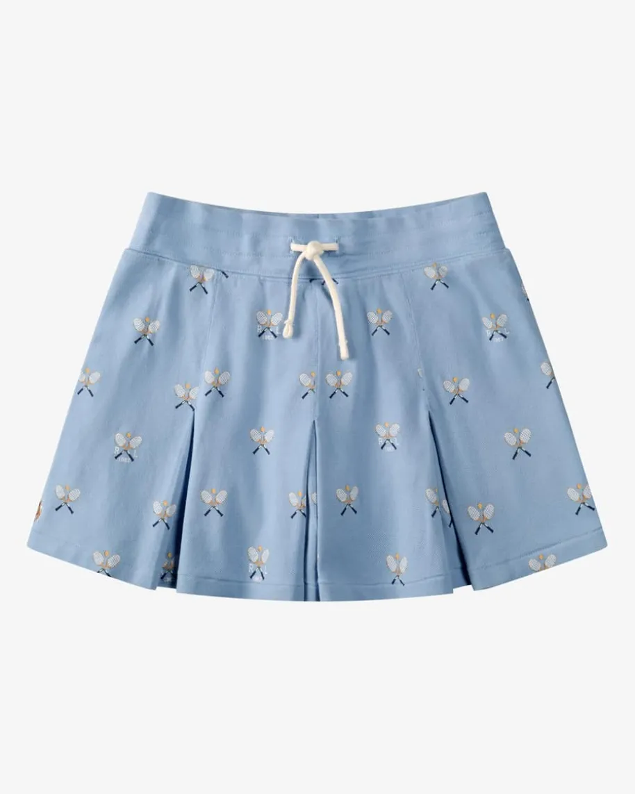 Faltenrock für Mädchen von Polo Ralph Lauren in Hellblau. Das Modell bestichtdank der elastischen Piquée-Qualität sowie den raffinierten Falten-Details inniedlicher Aufmachung, während der sportive Tennis-Print das Gesamtbildharmonisch untermalt.