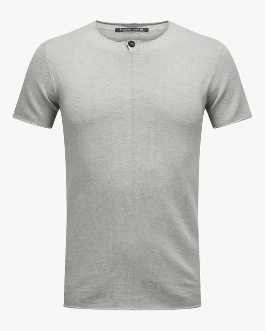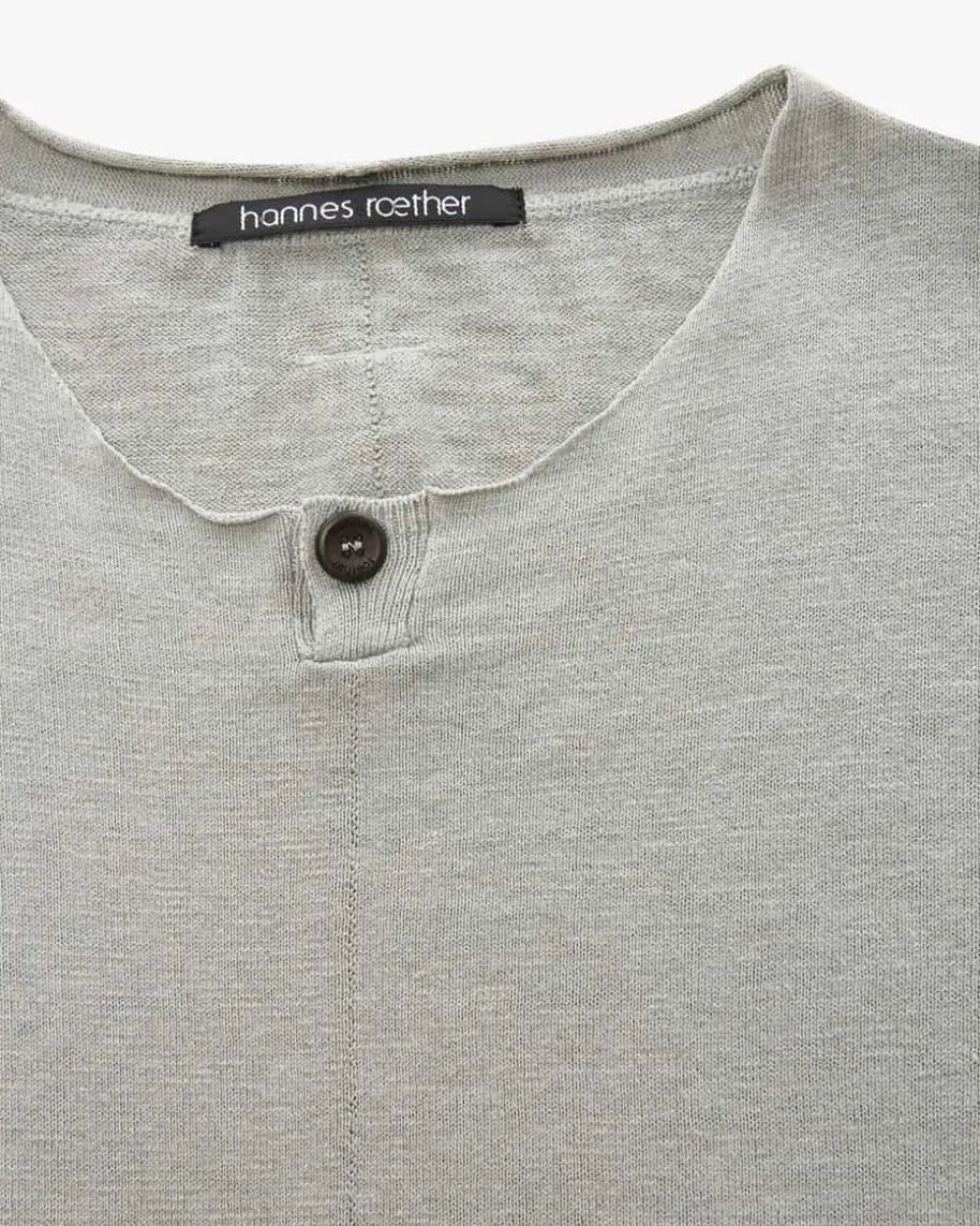 Strickshirt für Herren von Hannes Roether in Graugrün. Das Modell überzeugt dankdes hochwertigen Baumwoll-Leinen-Mix als angenehm-weicher Alltagsbegleiter,während die feine Strick-Aufmachung dem Gesamtbild einen legeren Charakterverleiht.