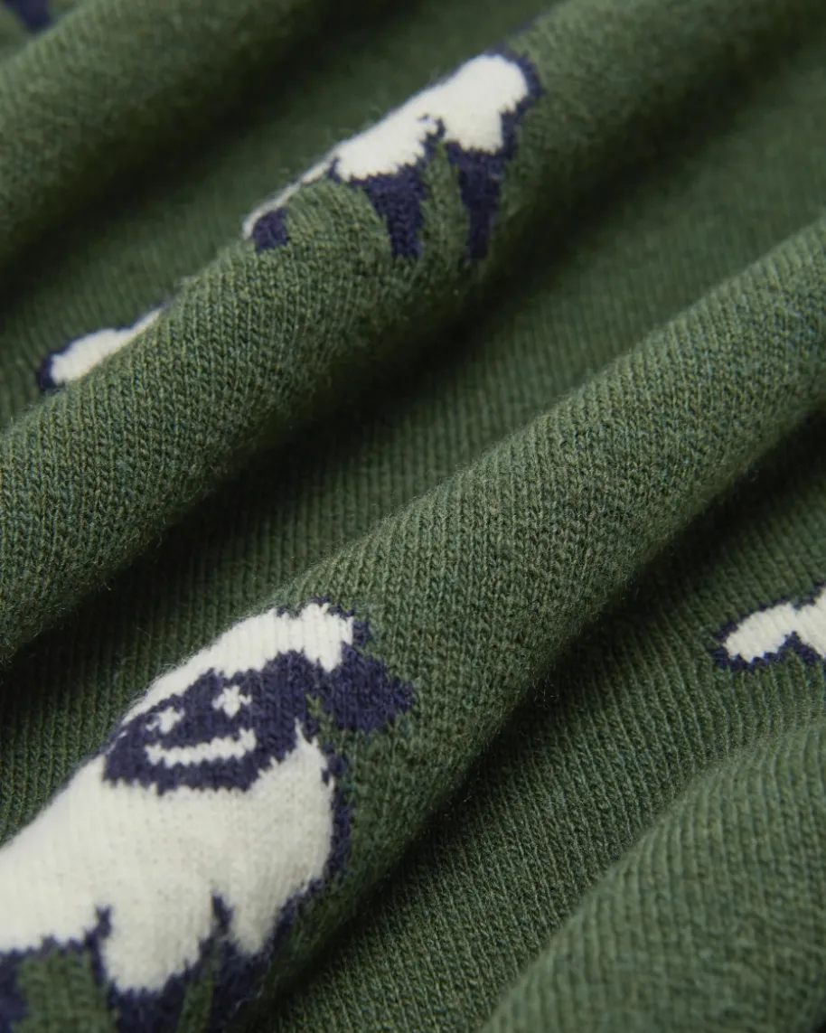 Farmer Pullover für Herren von LODENFREY in Oliv. Dank des modischen Allover-Dessins mit Schaf-Motiv präsentiert sich das Modell in origineller Aufmachung,während die hochwertige Merinowolle einen besonders weichen Griff verspricht.