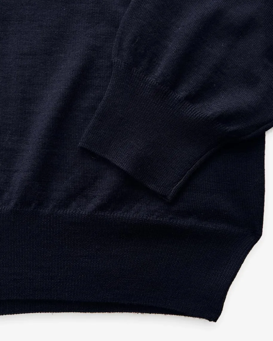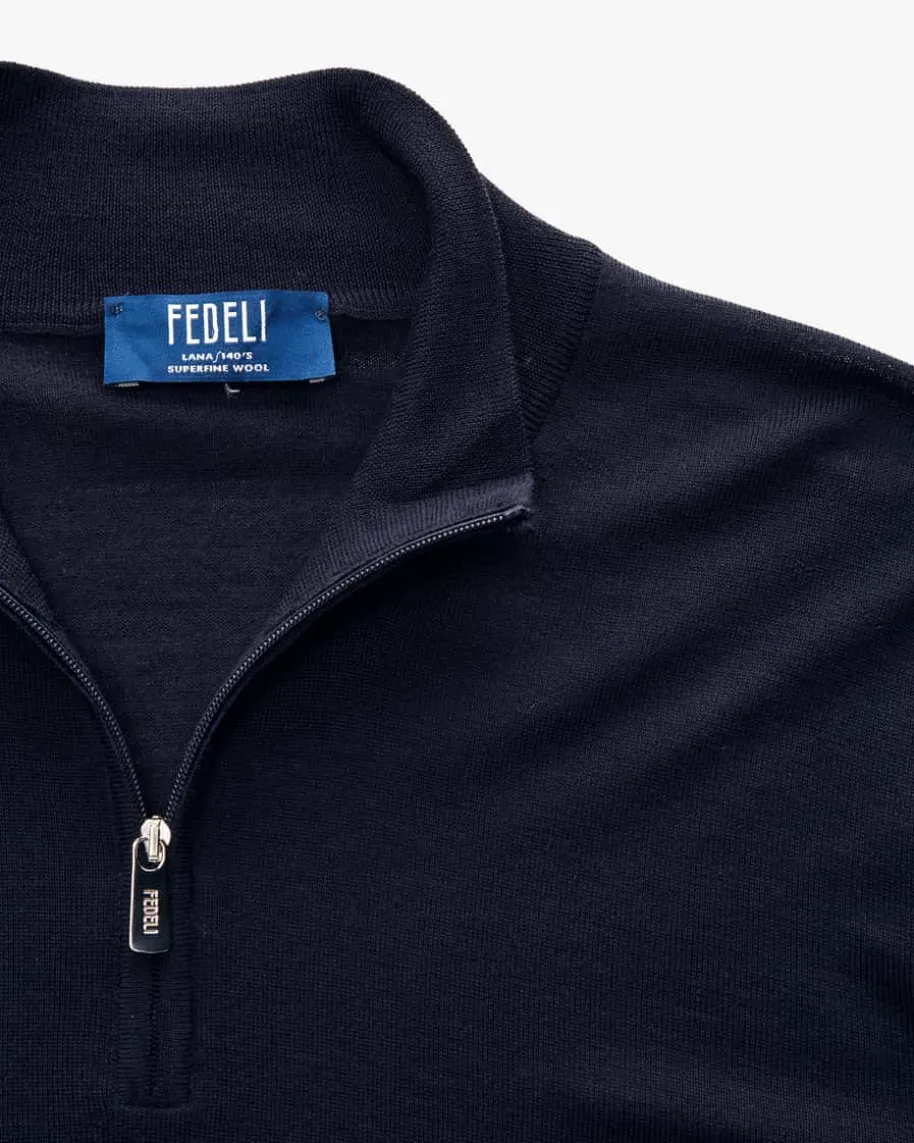 Favonio M.L. Pullover für Herren von Fedeli in Marine. Die sehr hochwertige undfeine Super 140 Schurwoll-Qualität verleiht ein besonders angenehmes, leichtesTragegefühl, während das cleane Design einen vielseitigen Casual-Begleiter fürklassische Outfits schafft. Zudem wird dank einer besonderen Webtechnik eineperfekte Passform gewährleistet.
