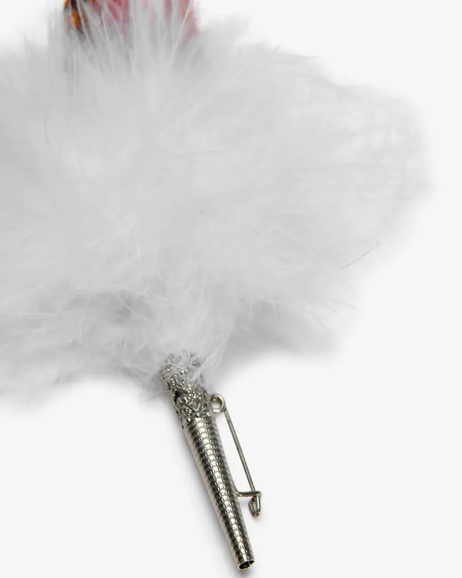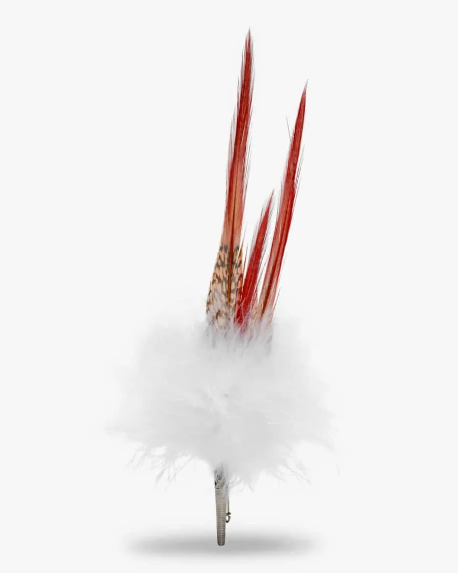 Federgesteck Goldfasan Hutanstecker für Herren von Bayern Specials in Rot, Weißund Silber. Die edlen Federn vom Goldfasan verleihen Ihrem Trachtenhut einebesondere Note und vollendet Ihr traditionelles Outfit stilvoll.