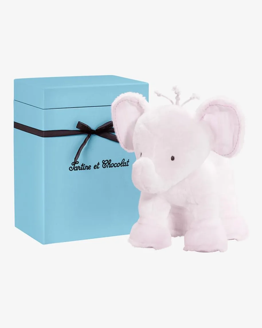 Ferdinand Plüschtier Elefant von Tartine et Chocolat in Rosa. Ferdinand ist ein kuscheliger Spielgefährte ebenso für kleine wie für große Kinder. Mit seinem flauschigen, rosa-farbenen Fell ist das Stofftier ein toller Schmusepartner. Neben einem süßen Haarbüschel auf dem Kopf verstärken auch die stoffwattierten, großen Ohren des Elefanten die niedliche Optik. Für Abwechslung und Spaß beim Greifen sorgt die mit feinen Kunststoffperlen gefüllte Partie am Bauch und in den Füßen. Durch die auf dem Rücken eingestickten Initialen von Tartine et Chocolat wird das Plüschtier zum echten Highlight. Inklusive der passenden Geschenkschachtel ist der Kuscheltier-Elefant immer eine besonders gelungene Überraschung und somit das perfekte Geschenk, zum Beispiel für Geburtstage oder die Taufe.