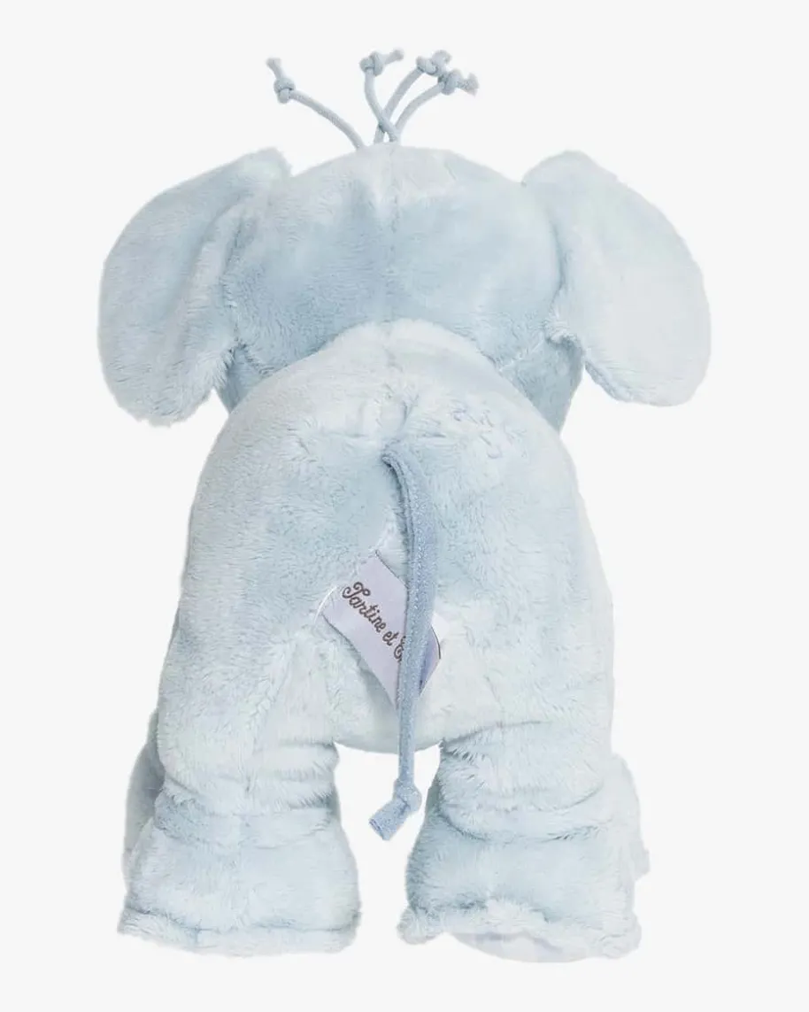 Ferdinand Plüschtier Elefant von Tartine et Chocolat in Hellblau. Ferdinand ist ein kuscheliger Spielgefährte ebenso für kleine wie für große Kinder. Mit seinem flauschigen, hellblau-farbenen Fell ist das Stofftier ein toller Schmusepartner. Neben einem süßen Haarbüschel auf dem Kopf verstärken auch die stoffwattierten, großen Ohren des Elefanten die niedliche Optik. Für Abwechslung und Spaß beim Greifen sorgt die mit feinen Kunststoffperlen gefüllte Partie am Bauch und in den Füßen. Durch die auf dem Rücken eingestickten Initialen von Tartine et Chocolat wird das Plüschtier zum echten Highlight. Inklusive der passenden Geschenkschachtel ist der Kuscheltier-Elefant immer eine besonders gelungene Überraschung und somit das perfekte Geschenk, zum Beispiel für Geburtstage oder die Taufe.