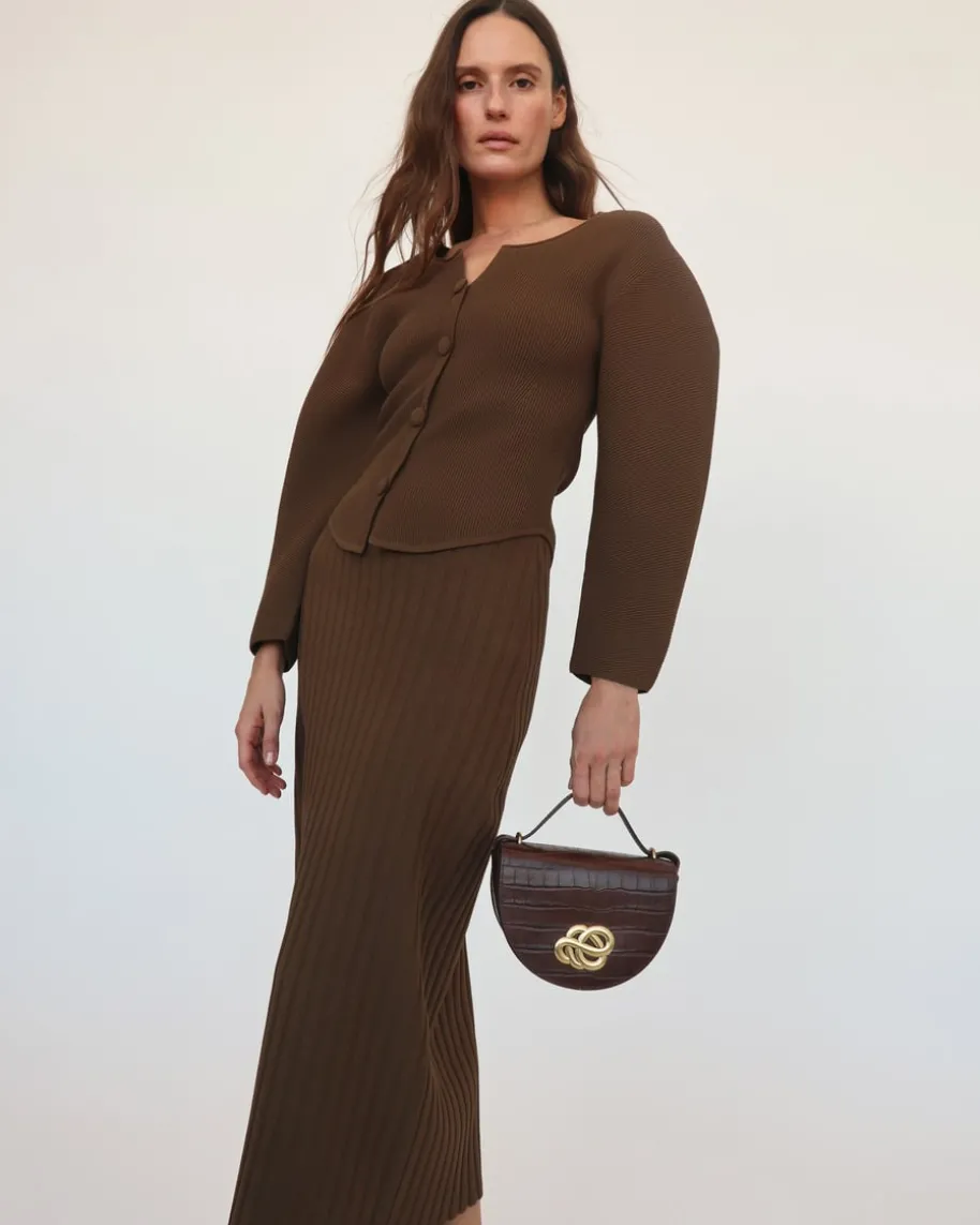 Fiemme Rock für Damen von By Malene Birger in Khaki. Edel und sportiv – Sopräsentiert sich das figurbetonte Modell in elastischer Material-Qualität.Während das markante Rippstrick-Dessin eine legere Note verleiht, verspricht dieGesamtaufmachung einen edlen Auftritt.