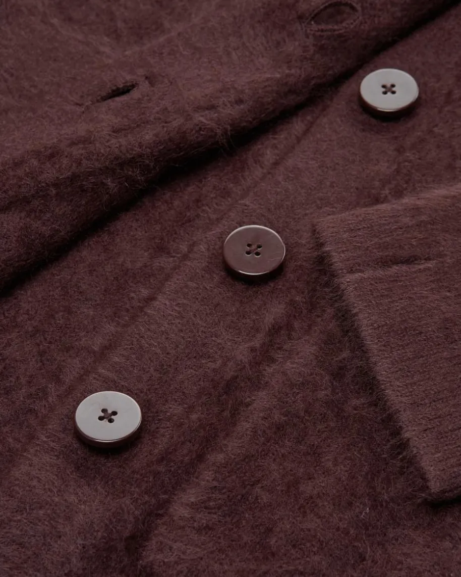 Fluffy Statement Strickmantel für Damen von Dorothee Schumacher in Schoko.Feminine Power aus Deutschland – Dorothees Looks verbinden Stärke mitverspielter Eleganz. Dieses Modell aus hochwertigem Schurwoll-Cashmere-Mixpräsentiert sich in weicher Brushed-Aufmachung und überzeugt somit sowohl alshaptisches wie auch optisches Highlight.