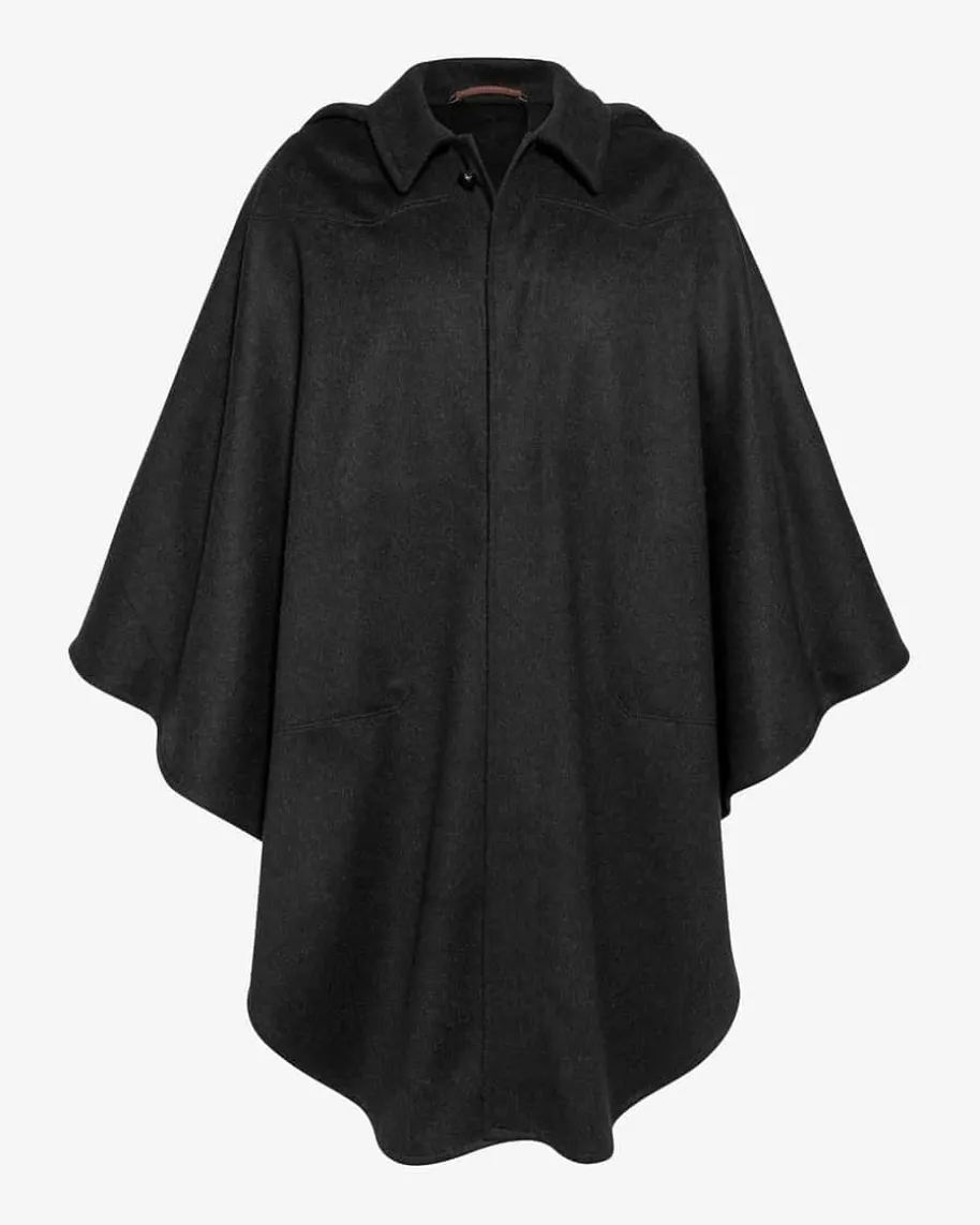 Försterkragen Trachten-Cape für Herren von Steinbock in Anthrazit. Dasausgestellte Modell aus hochwertigem Schurwoll-Mix begeistert durch einenmodischen Hemdkragen sowie eine abnehmbare Kapuze. Der Saum weist auf derInnenseite zwei knöpfbare Riegel auf, während eine verdeckte Knopfleiste dasDesign mit melierter Optik gekonnt ergänzt.
