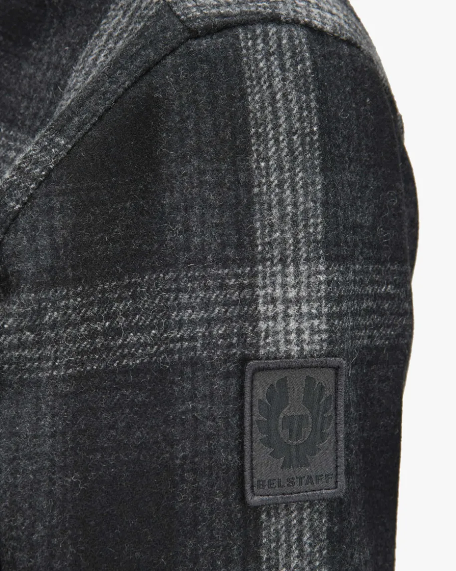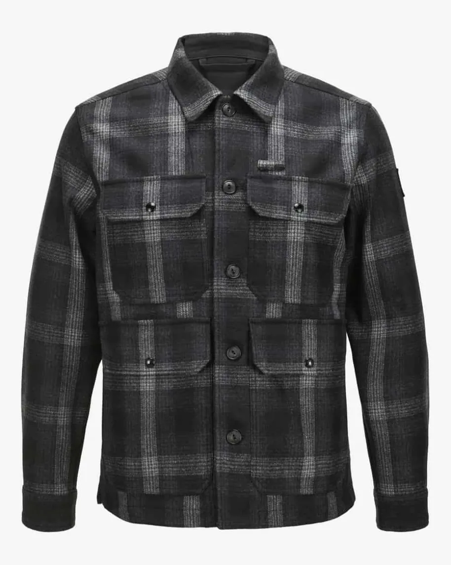 Forge Overshirt für Herren von Belstaff in Schwarz, Anthrazit und Hellgrau.Während das Modell dank dem hochwertigen und weichen Woll-Mix im Karo-Mustersowohl haptisch als auch optisch überzeugt, kreiert die legere Hemdjacken-Aufmachung einen maskulinen Look mit Stil.