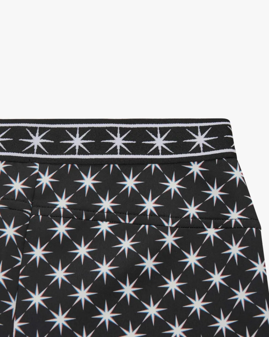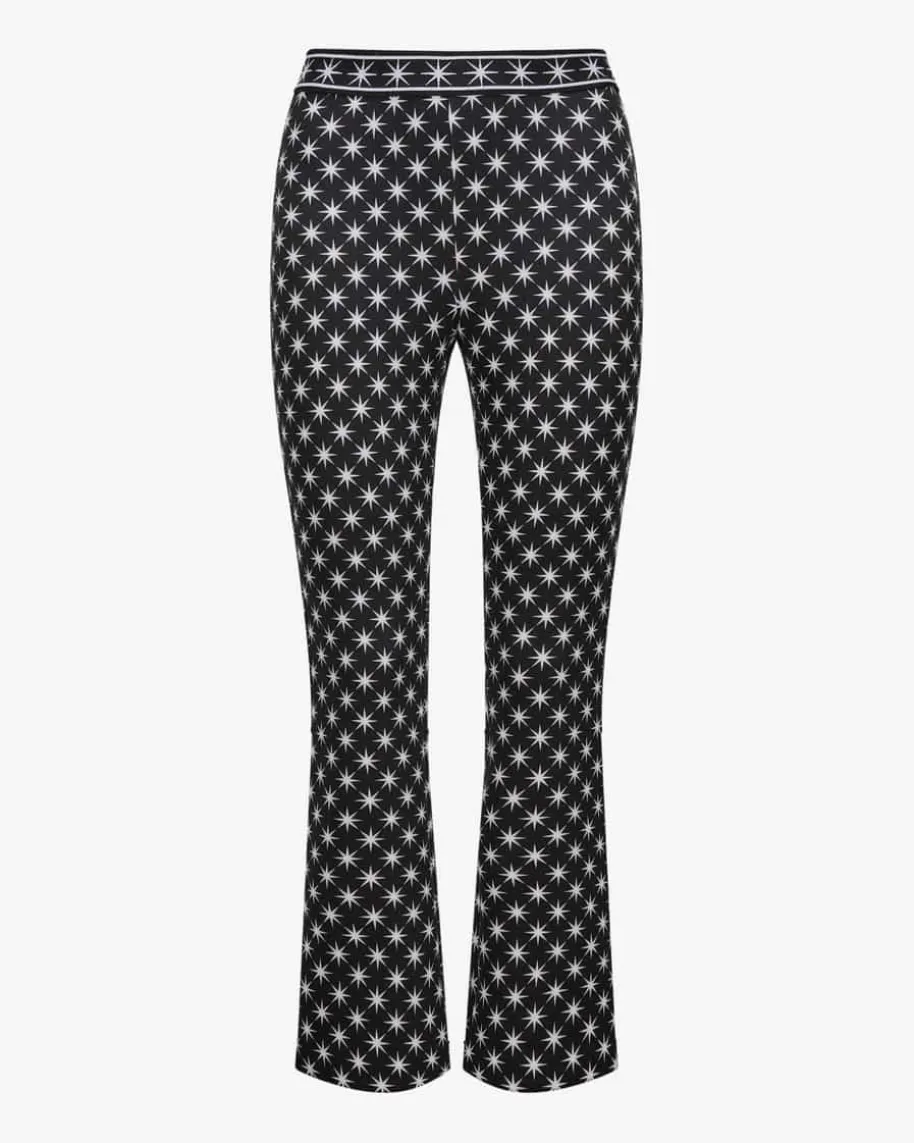Frederica 7/8-Hose Feminine Fit für Damen von Marc Cain in Schwarz und Weiß. Diedeutsche Marke steht für selbstbewusste, feminine Looks. Auch dieses Modellpräsentiert sich mit dezent ausgestellter Passform und elastischem Bund mitStern-Design, während die elastische Qualität in Neopren-Optik für angenehmenTragekomfort sorgt. Das modische Allover-Muster rundet den sportiven Look mitwinterlichem Touch gekonnt ab.