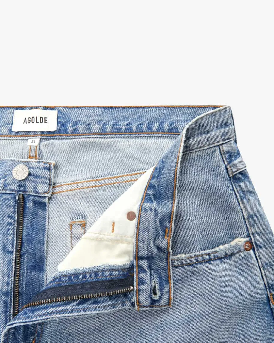 Fusion Jeans für Herren von Agolde in Eisblau. Gefertigt aus robuster,regenerativer Baumwolle, präsentiert sich das leicht verkürzte Modell inmodischem Loose-Fit, während die Bleached-Waschung im Raw-Look sowie Destroyed-Details die Jeans in einen Streetstyle-Favoriten verwandelt.