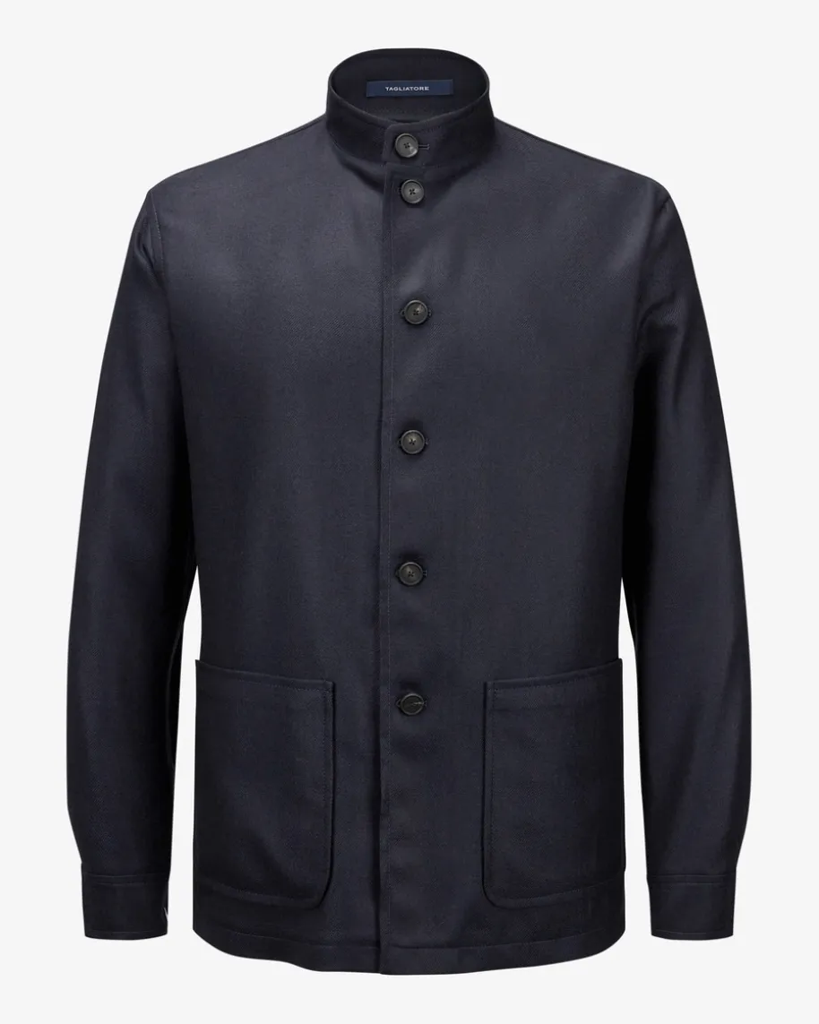 G-Klein Woll-Shirtjacket für Herren von Tagliatore in Navy. Dank demhochwertigen Schurwoll-Cashmere-Mix punktet das Stehkragen-Modell mit weichemGriff sowie edler Optik, welche die dezente Streifen-Struktur gekonntunterstreicht – Ein kombistarkes Herbst-Essential für maskuline Looks.